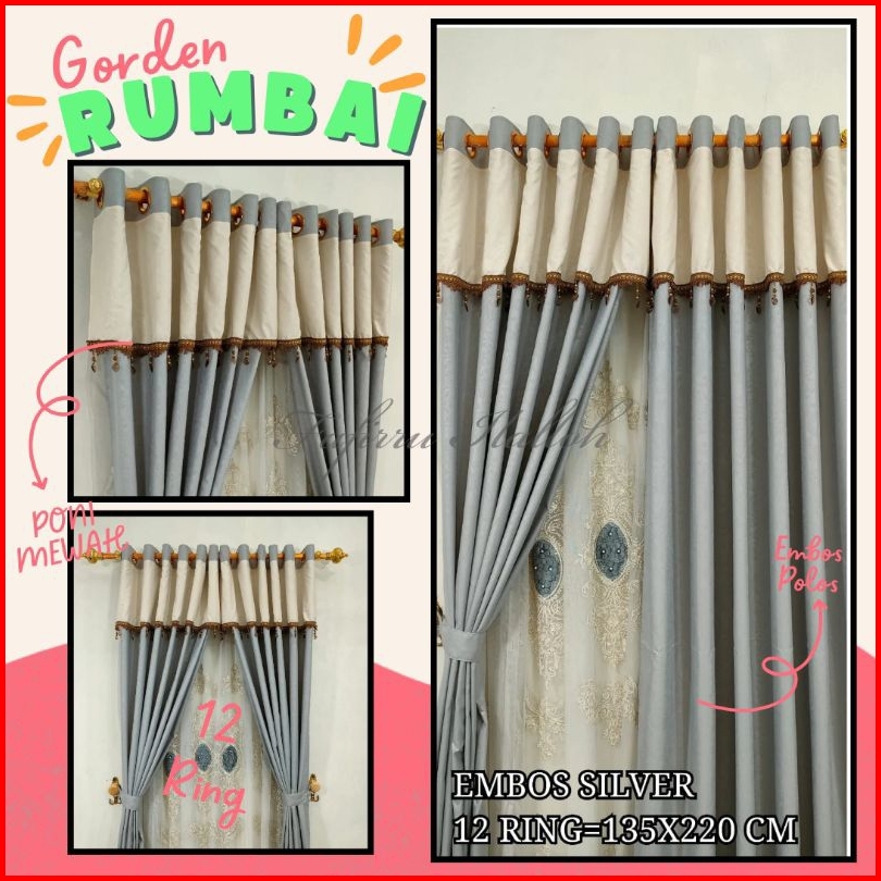 Gorden Tirai Hordeng Rempel Hati Jendela Pintu Embos 12 Lubang