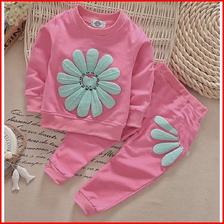 Zahra Setelan Anak Perempuan Sun Flower Bahan Fleece Pakaian Anak Kekinian Umur 1 - 6 Tahun