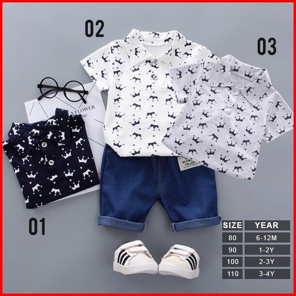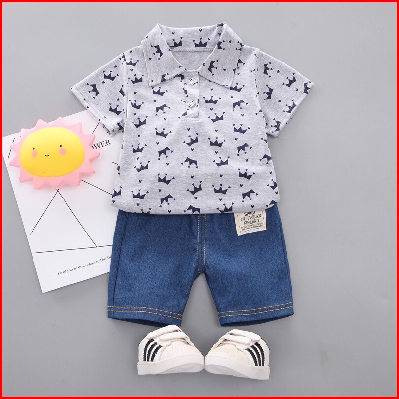Lkm148 Setelan Bayi Pakaian Anak Lengan Pendek Crown Mahkota Celana Pendek 1kg 9pc Little Kuma