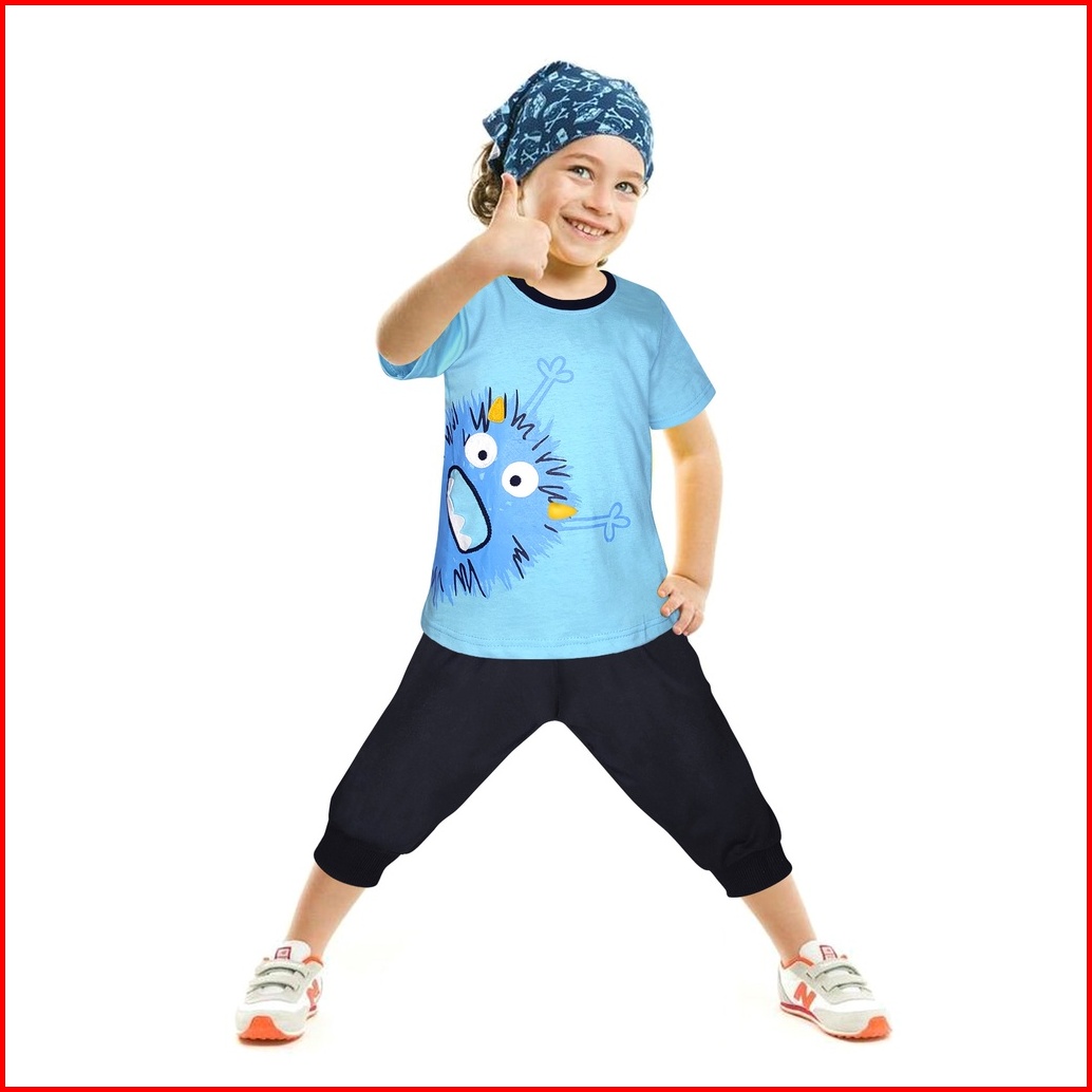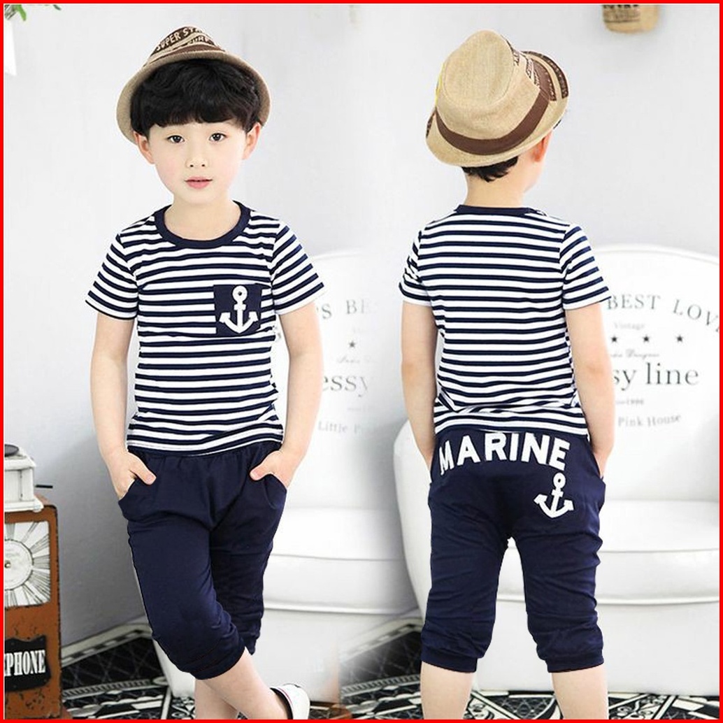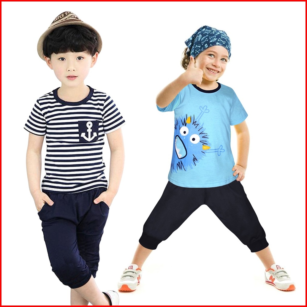 Setelan Anak Laki Laki Celana Joger 3 4 Bahan Babyterry Atasan Salur Katun Spandex Gambar Bordir Usia 1 Tahun Sampai 12