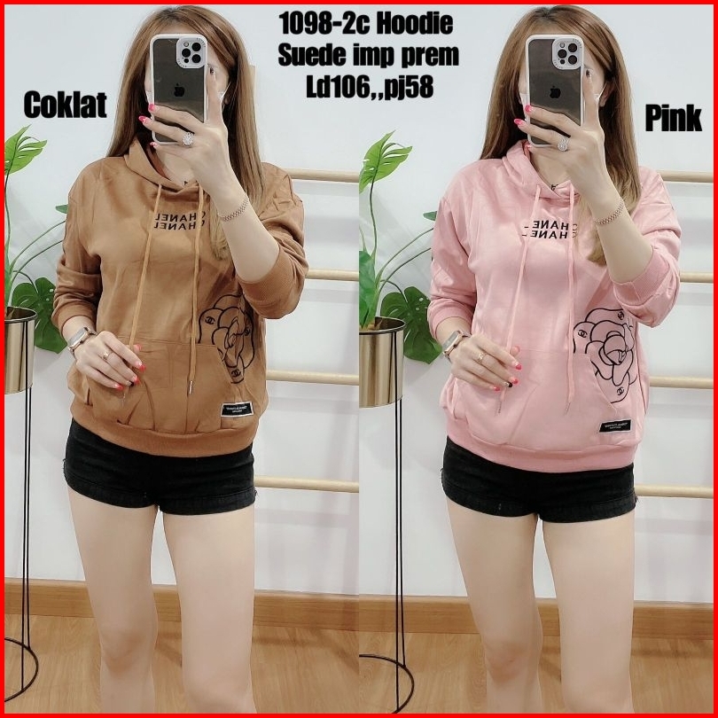 Atasan Suede Hoodie Premium Lembut Adem Sweater Motif Bordir 82022