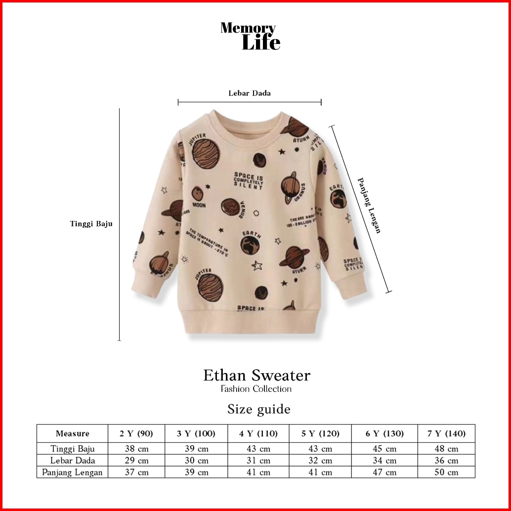 Memorylife - Ethan Sweater Sweater Premium Anak Perempuan Laki-laki Unisex Umur 2 Tahun - 7 Tahun