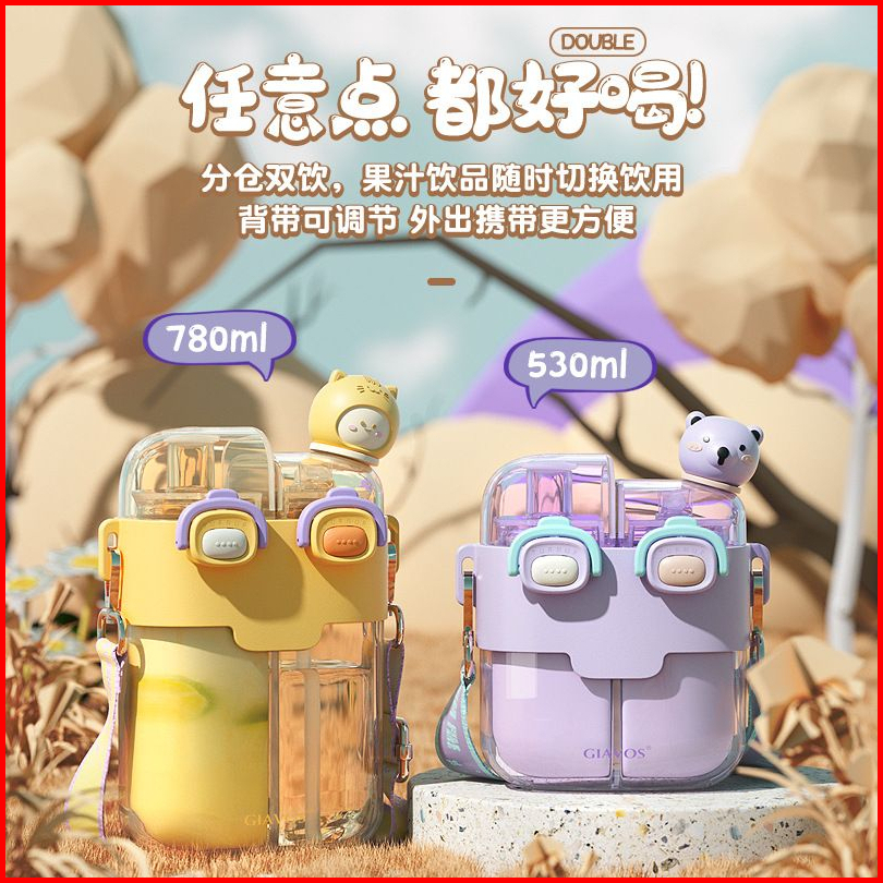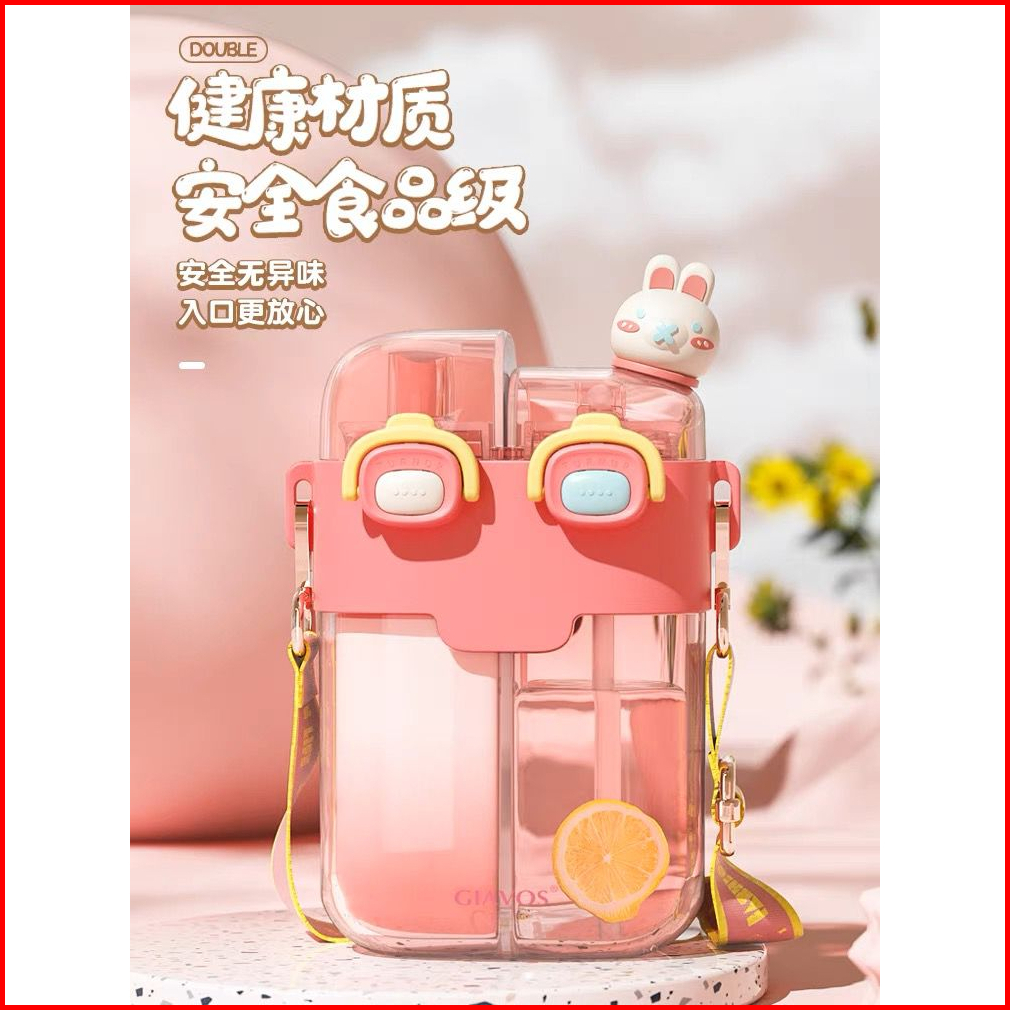 Free Stiker Botol Minum 2in1 Jumbo Bahan Tebal Botol Minum Anak 2 Sekat Dengan Dual Fungsi Minum Karakter Lucu Dengan Ta