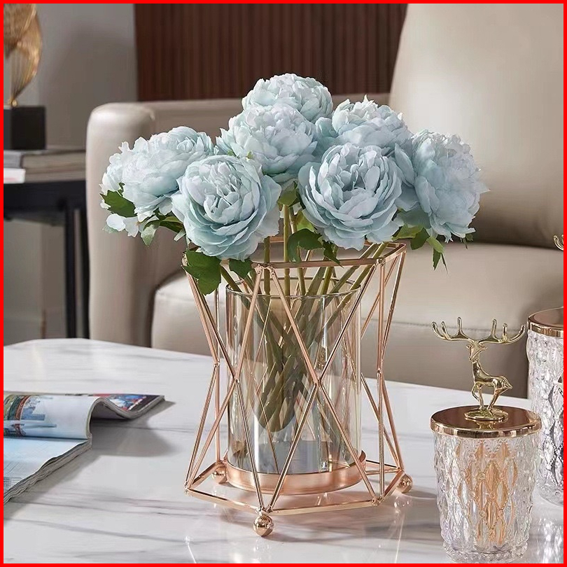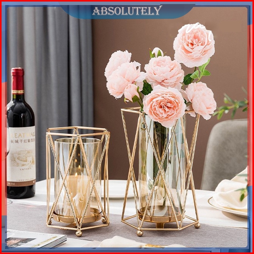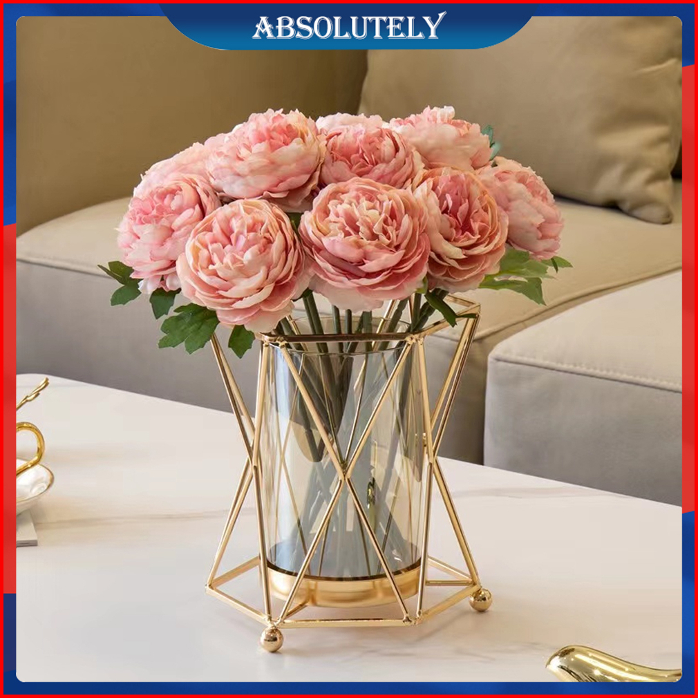 Vas Bunga Kaca Hidroponik Kreatif Palsu Rangkaian Bunga Kering Cahaya Ornamen Mewah Ruang Tamu Meja Makan Meja Kopi Deko