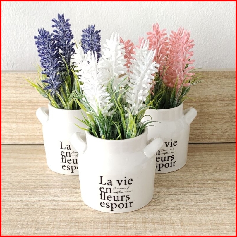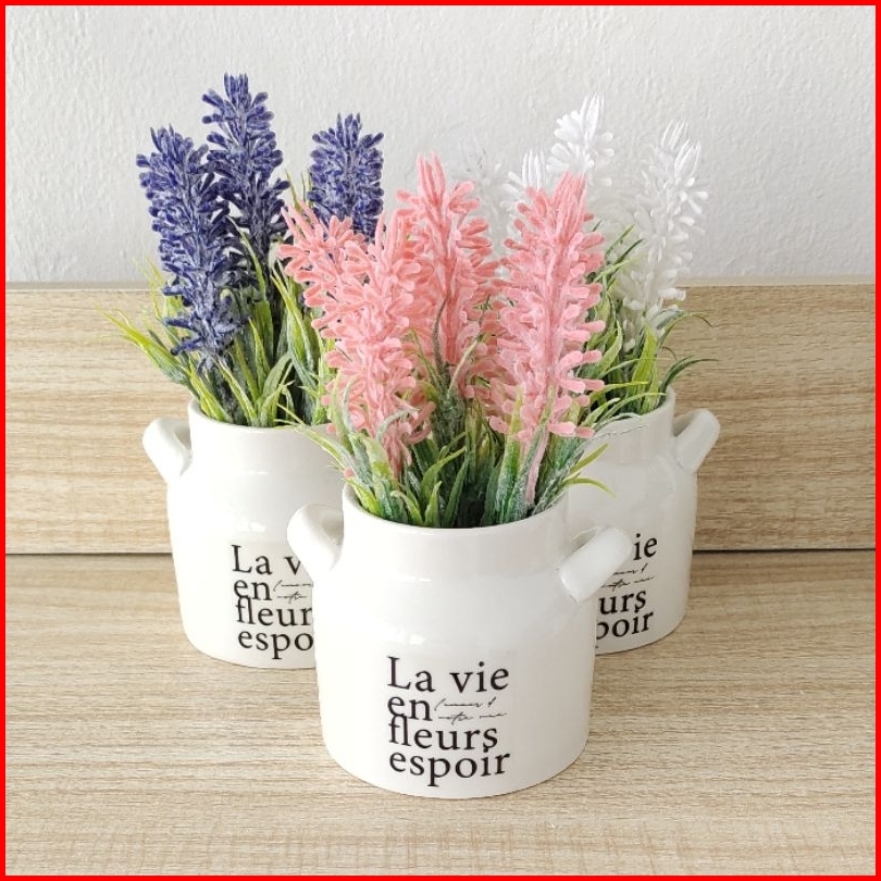 Bunga Artificial Lavender Mini Artificial Pot Keramik Bunga Palsu Plastik Hias Pajangan Dekorasi Properti Foto Gift