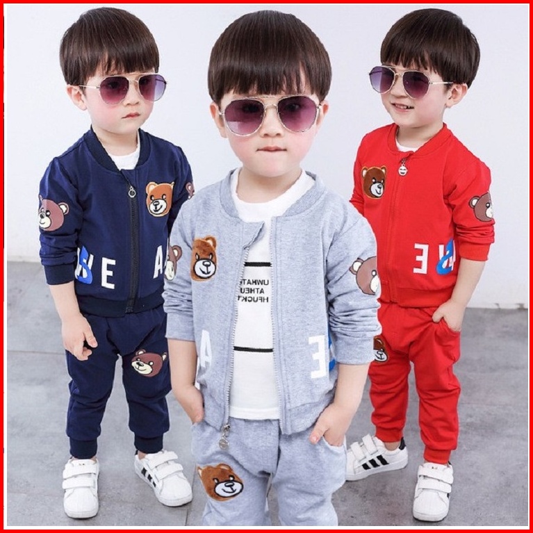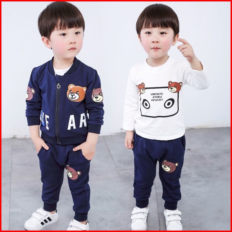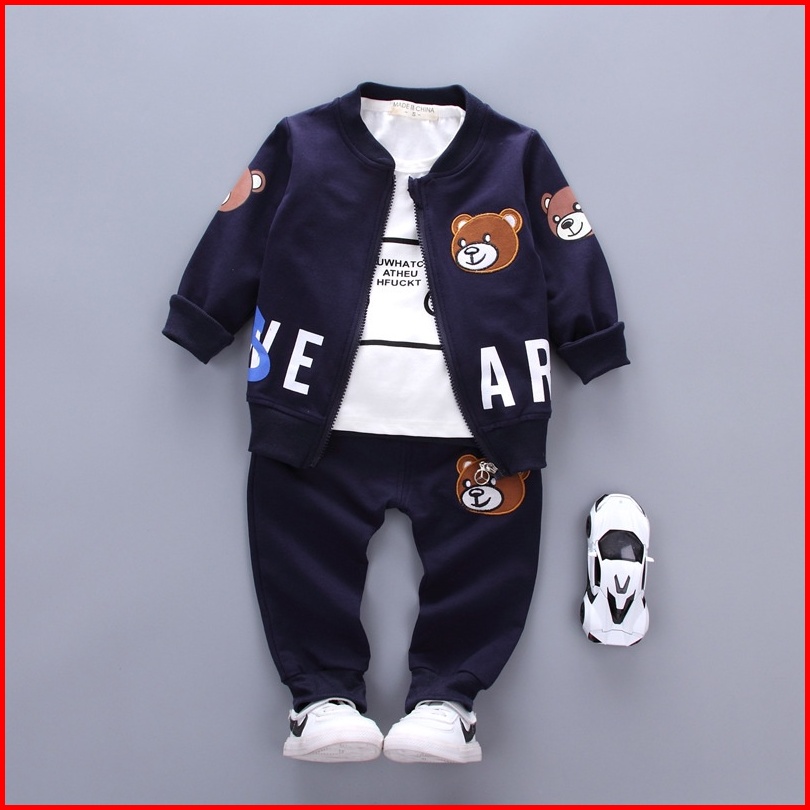 Ssl34-setelan Set 3in1 Anak Laki Tshirt Celana Jaket Bear