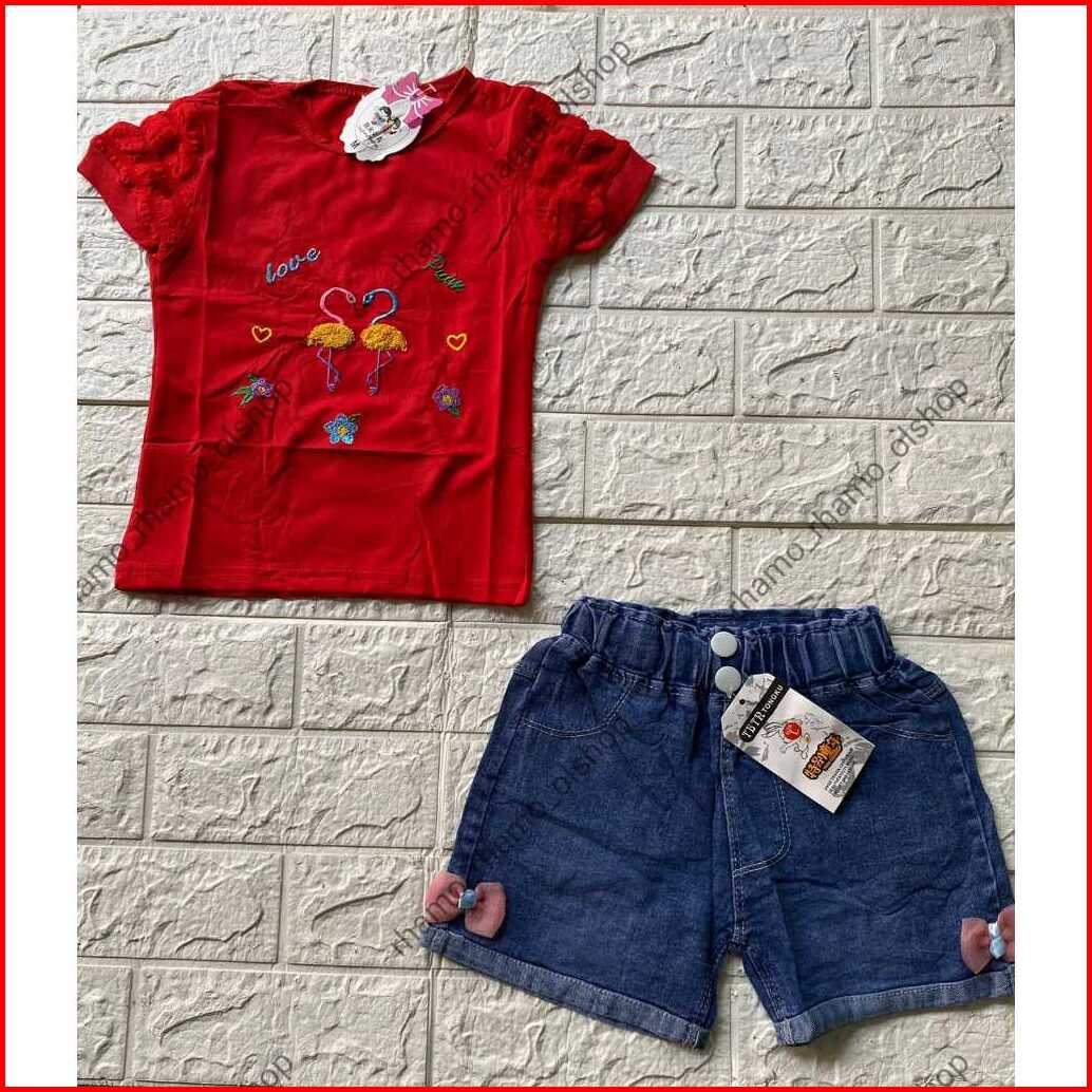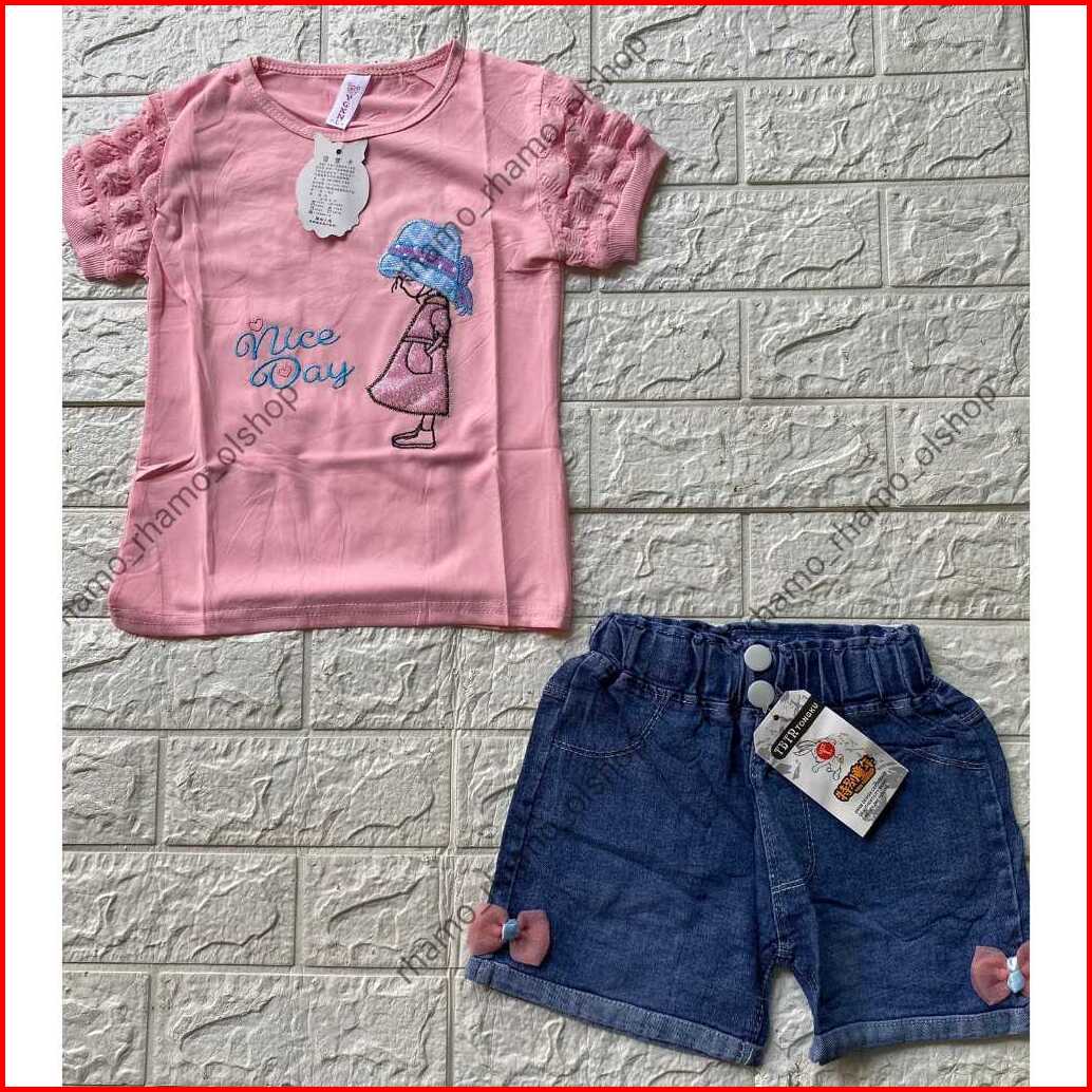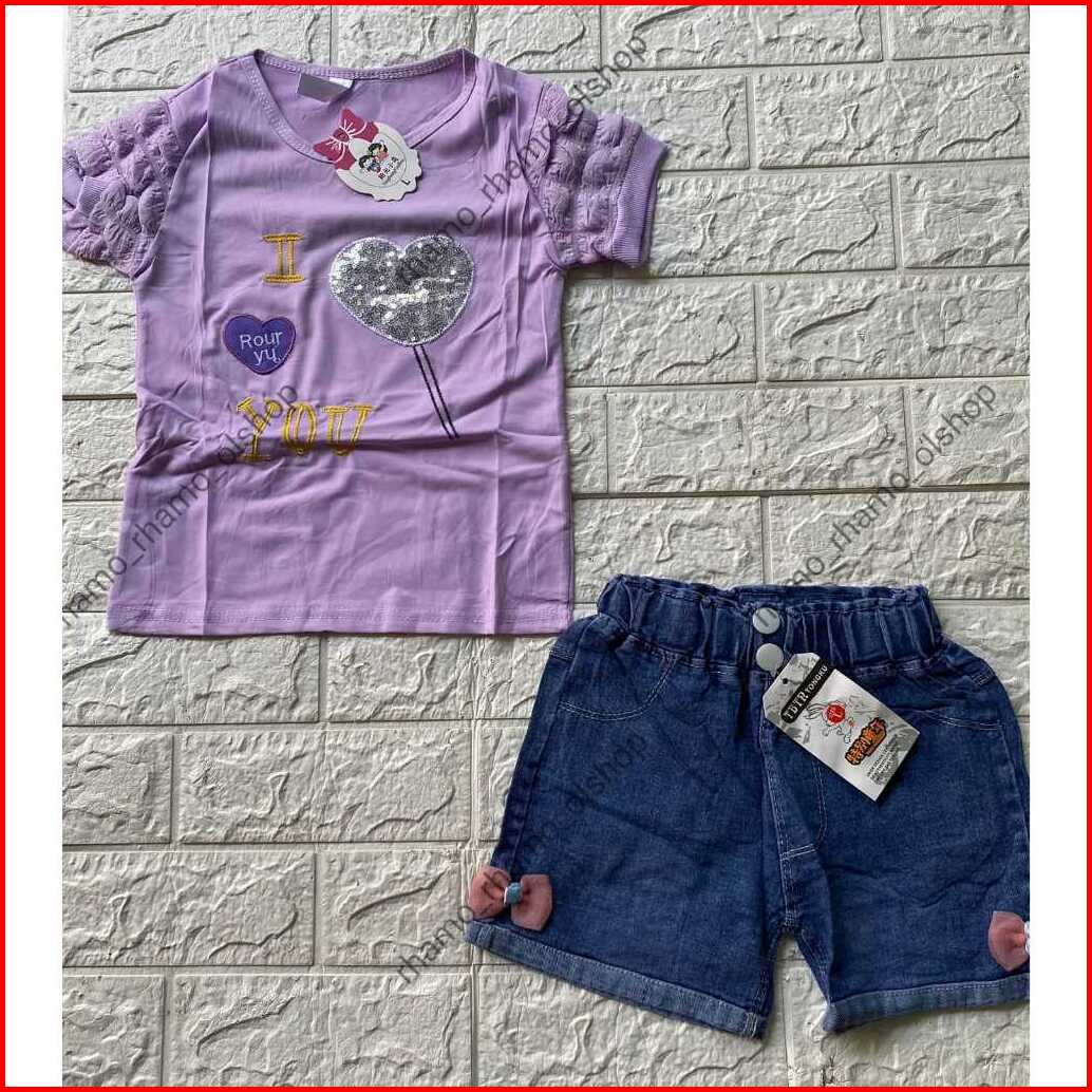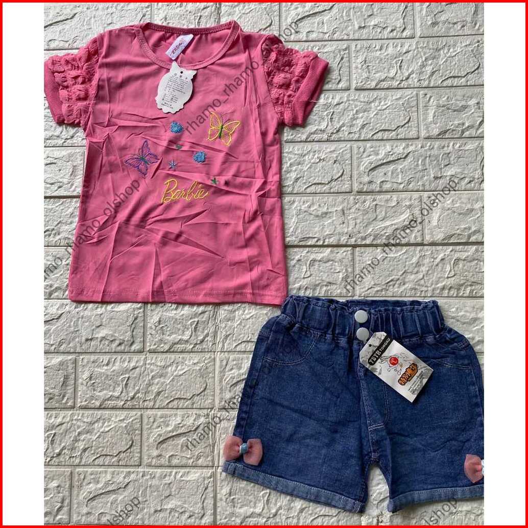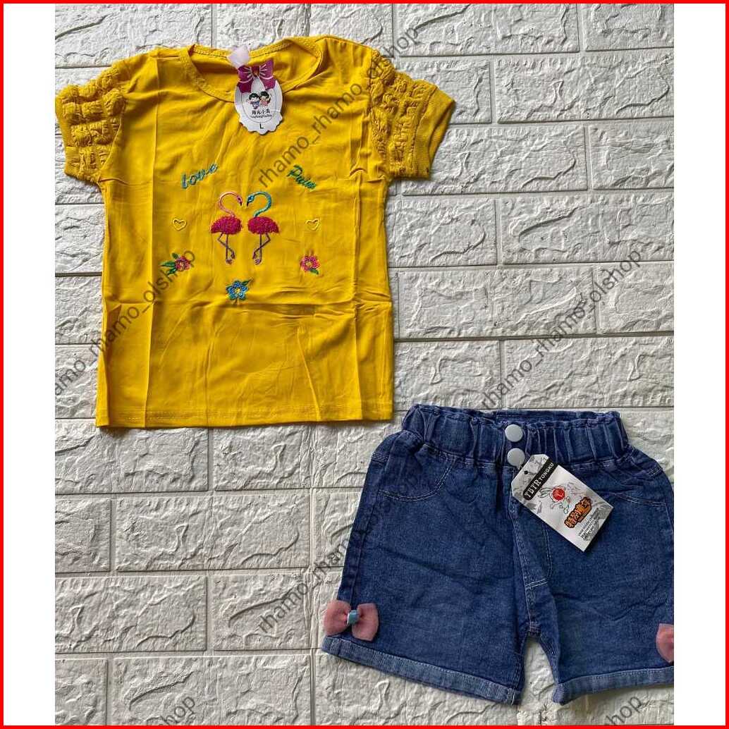Stelan Anak Perempuan Kaos Pendek Jagung Celana Hotpen