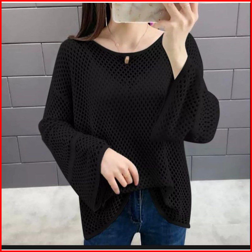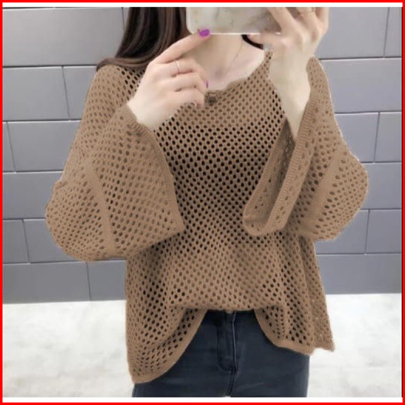 Atasan Jaring Rajut Messy Good Quality Lembut Model Kore Trending Korean Styl Rajut Wanita Jaring Korean Style
