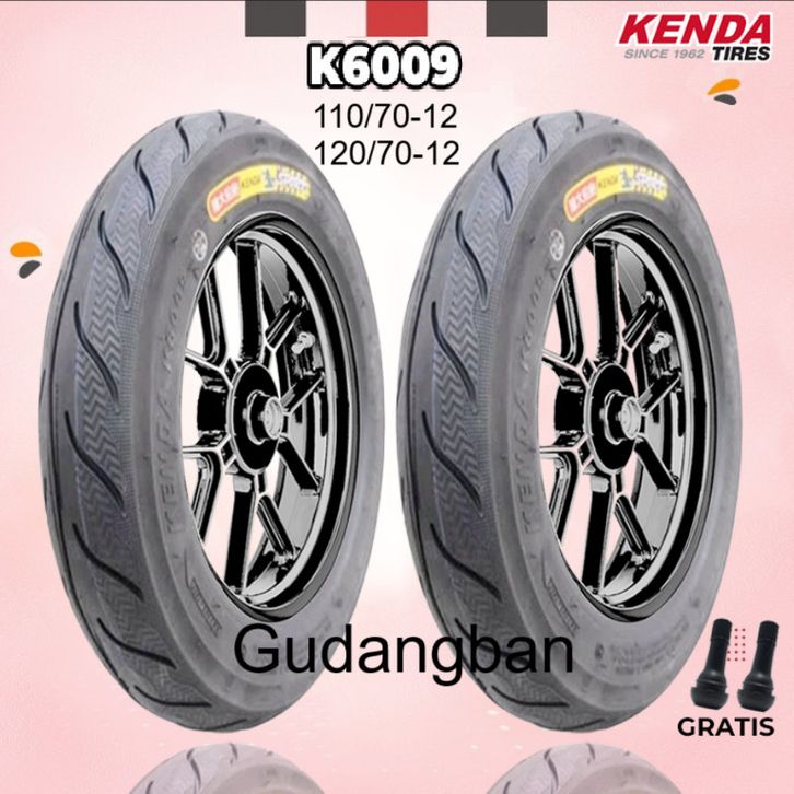 Paket KENDA K6009 110 70 12 dan 120 70 12 ORIGINAL FREE PENTIL Ban luar Tubeless Motor Vespa Ring 12