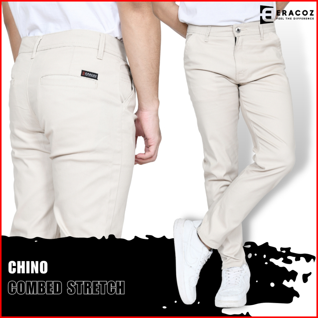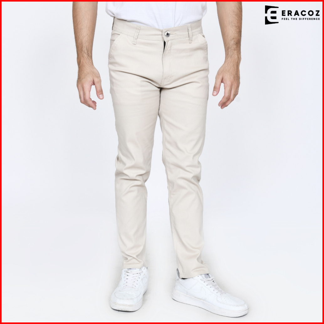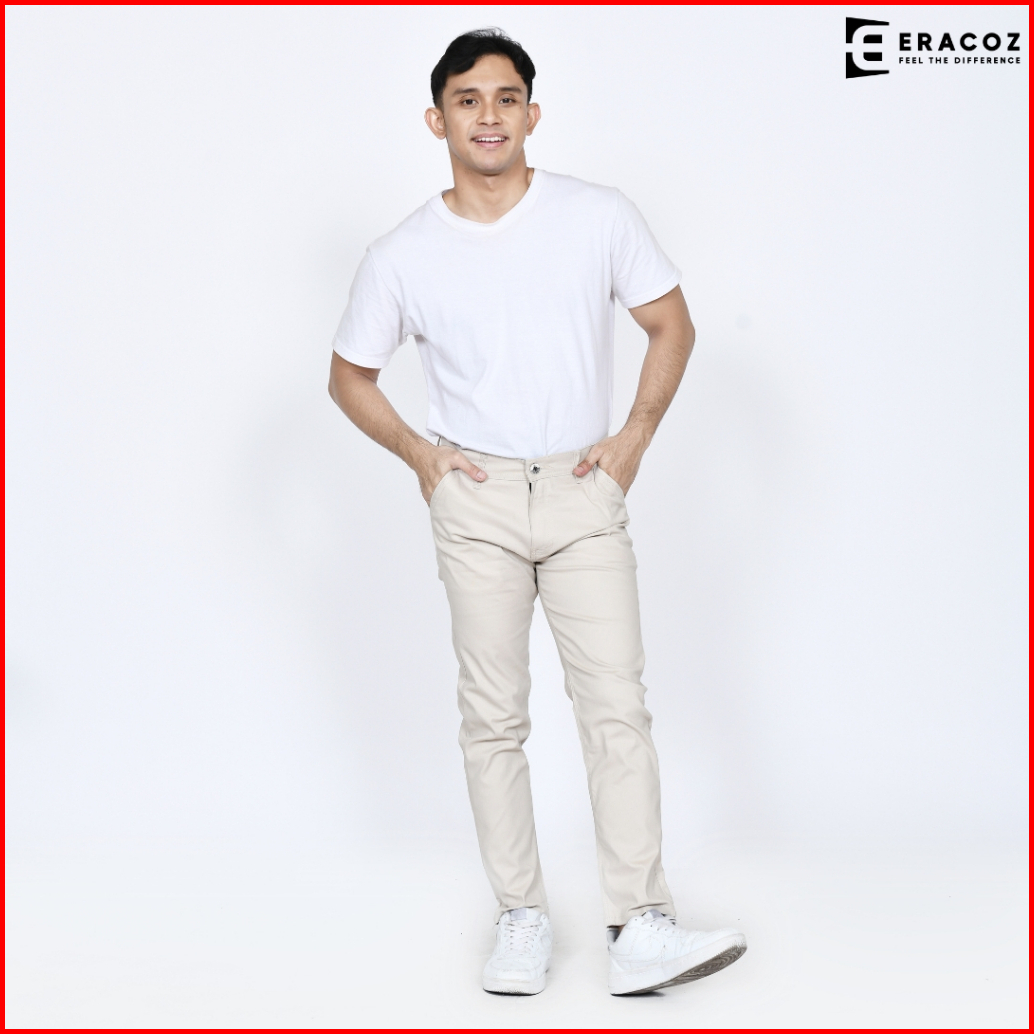 Eracoz Celana Chino Panjang Pria Skinny Fit Big Size Jumbo Cream
