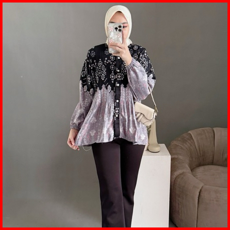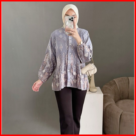 Arumy Blouse Pleats Shirt Atasan Wanita Kekinian Atasan Wanita Lengan Panjang Kemeja Wanita Motif Kemeja Wanita Trend At