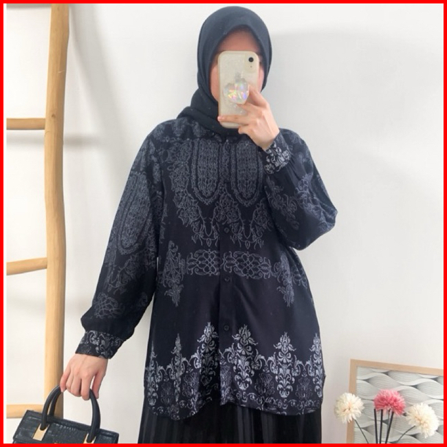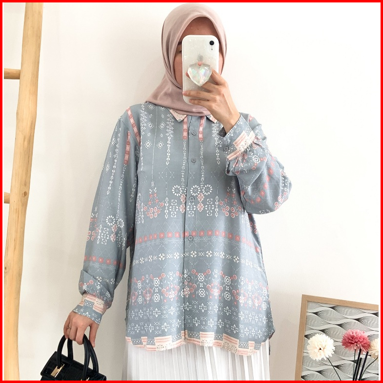 Vanya Shirt Blus Etnik Batik Wanita Atasan Korea Kemeja Oversize
