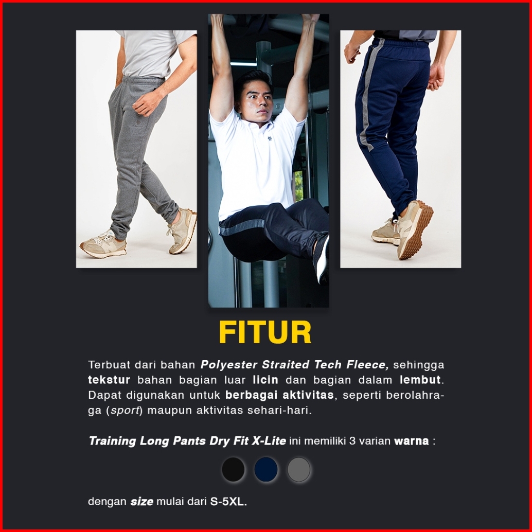 Tiento Celana Training Panjang Olahraga Lari Jogging Running Fitness Gym Casual Sport Extra Lite Pria