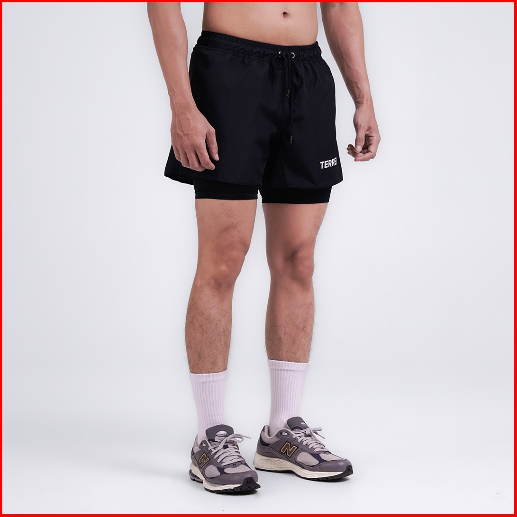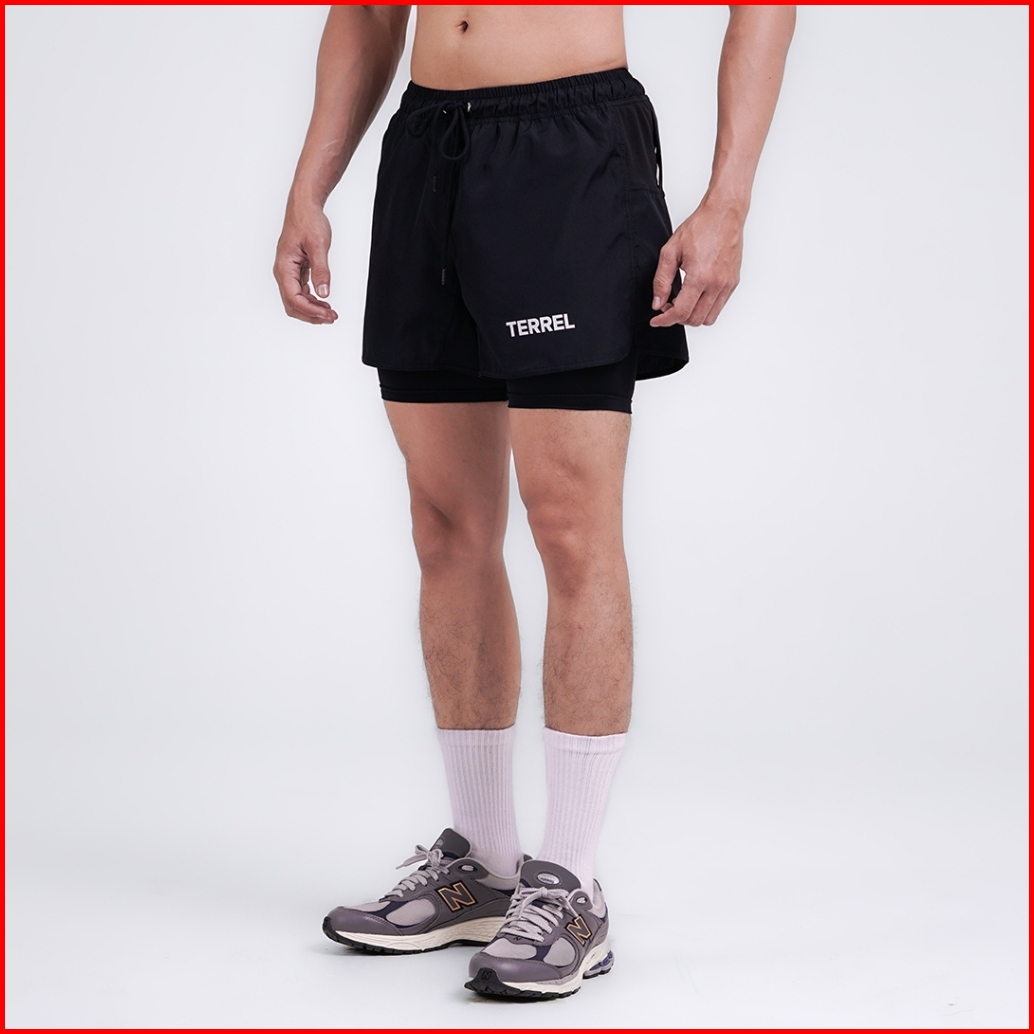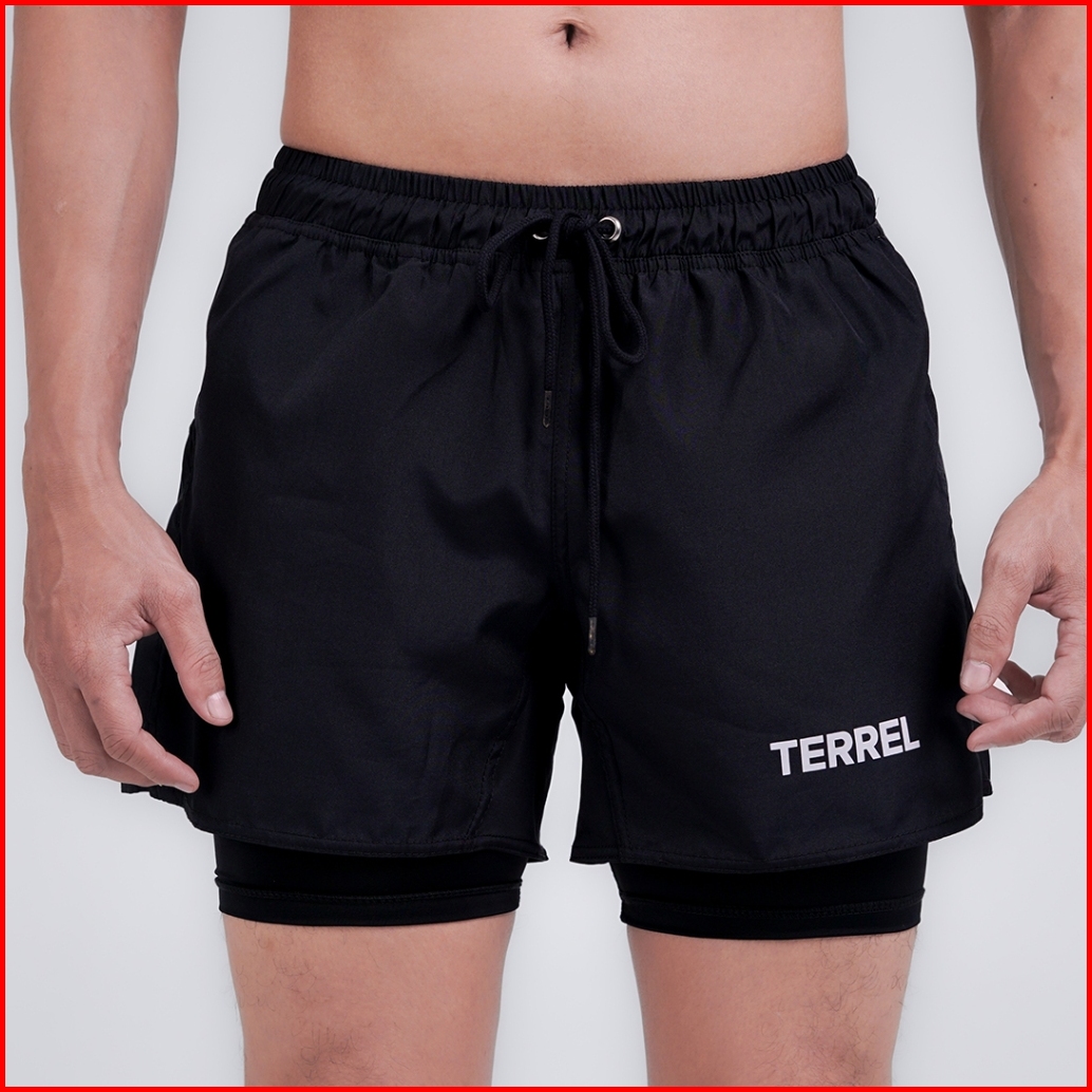 Terrel Sportswear Compression Short Black Celana Olahraga Pendek Gym Running Lari Pria