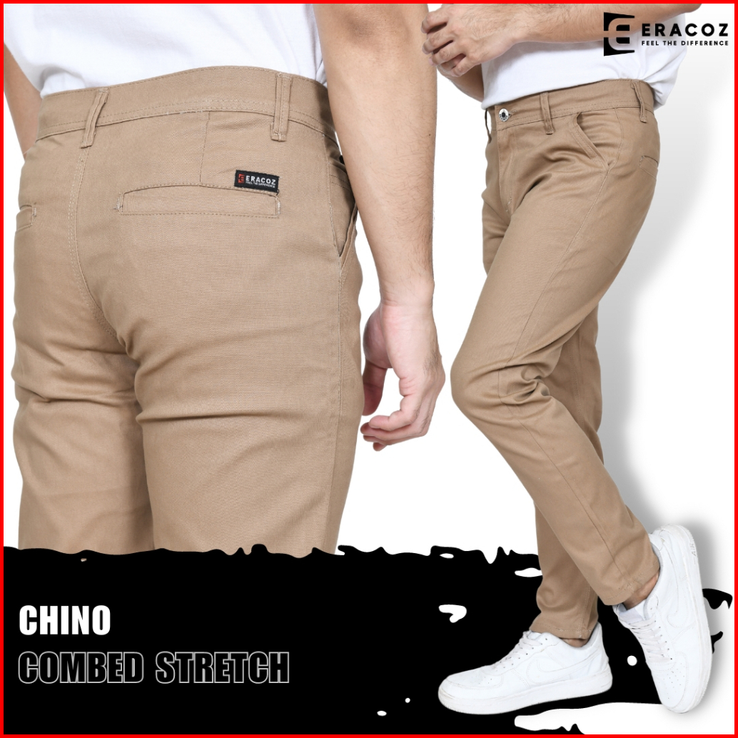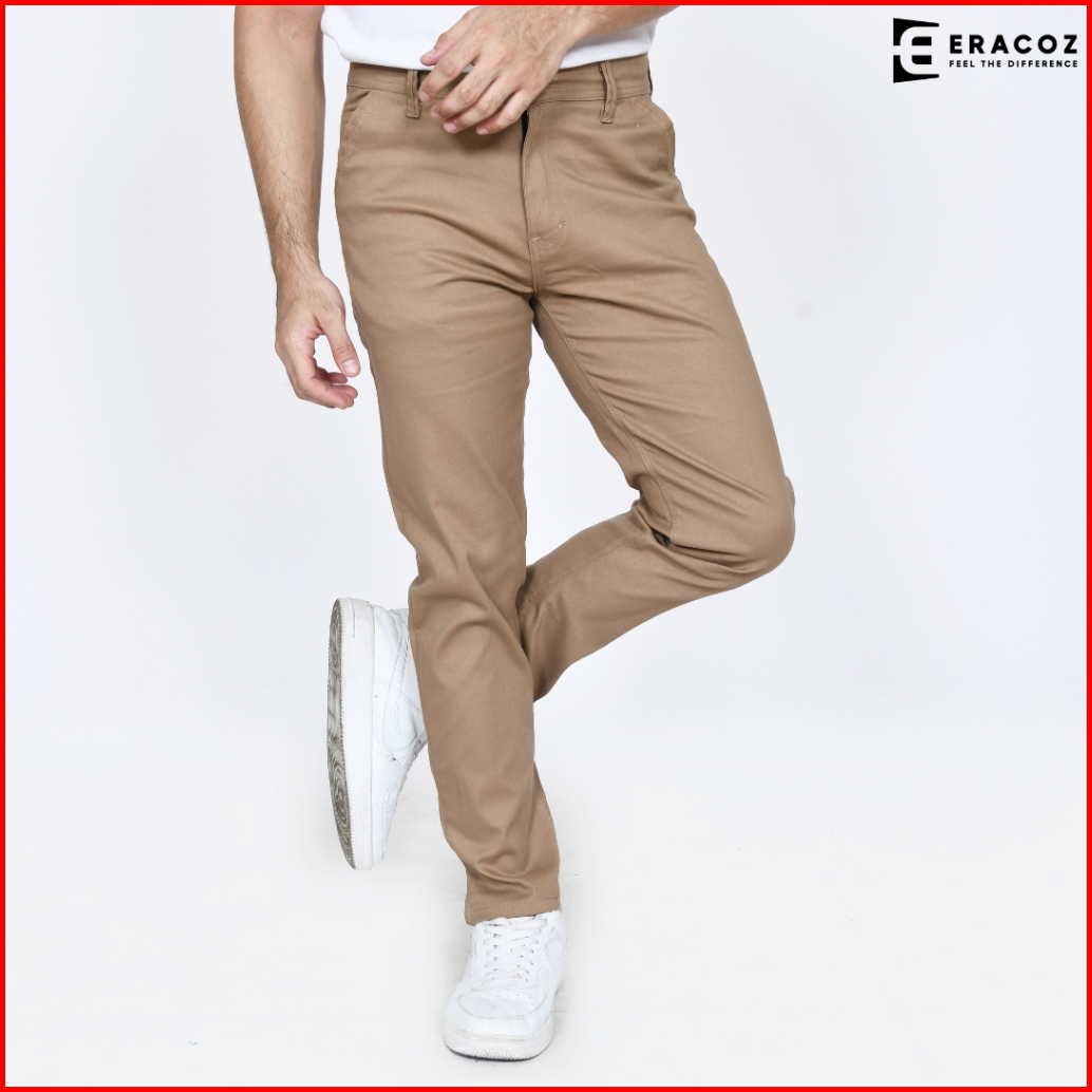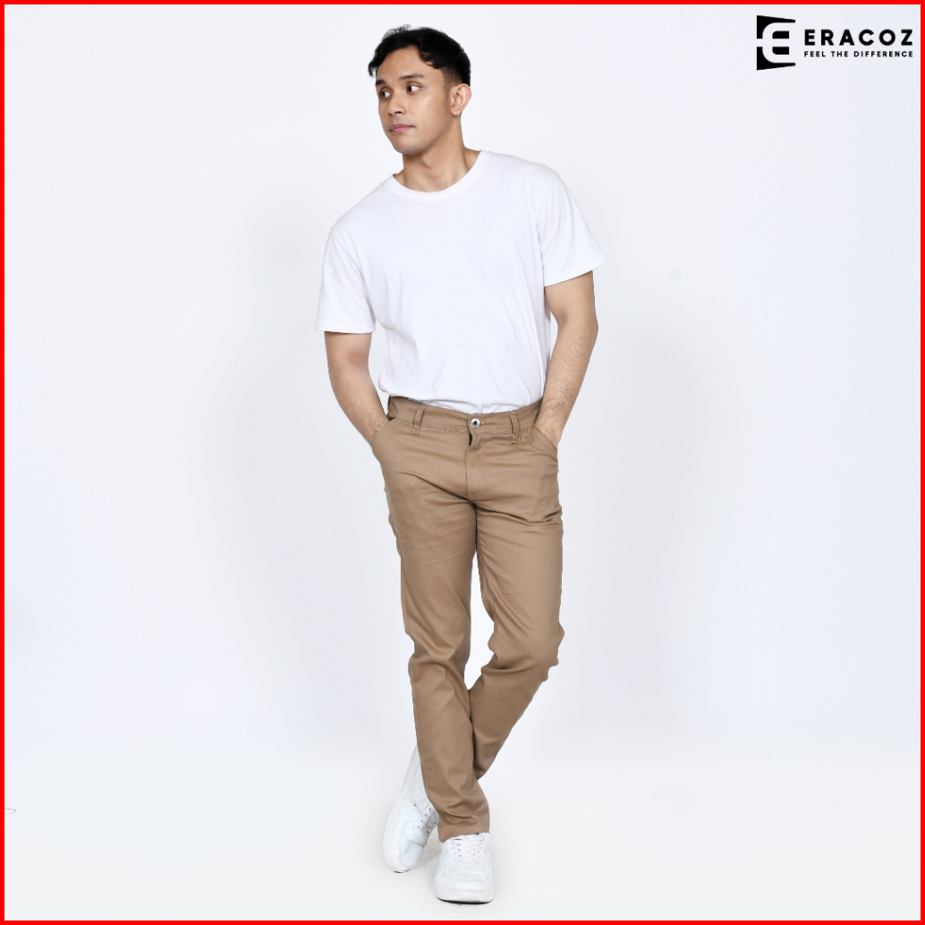Eracoz Celana Chino Panjang Pria Skinny Fit Big Size Jumbo Mocha