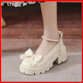 Platform Shoes Wanita Lolita Mary Janes Mutiara Japanese