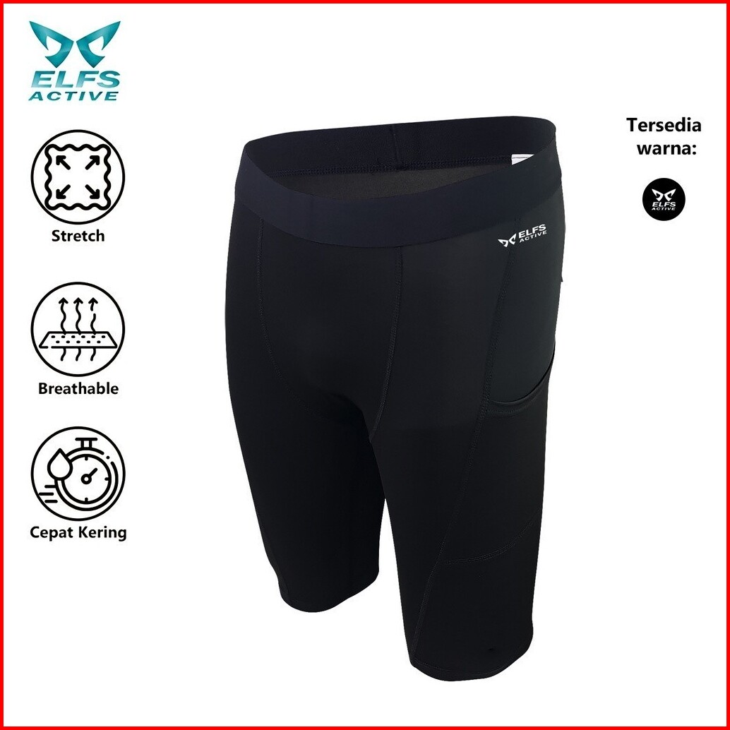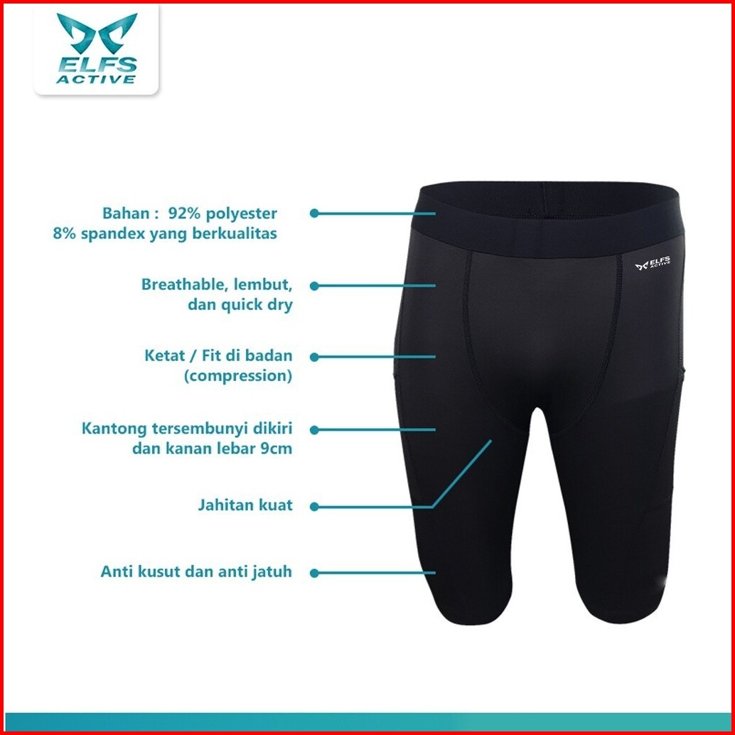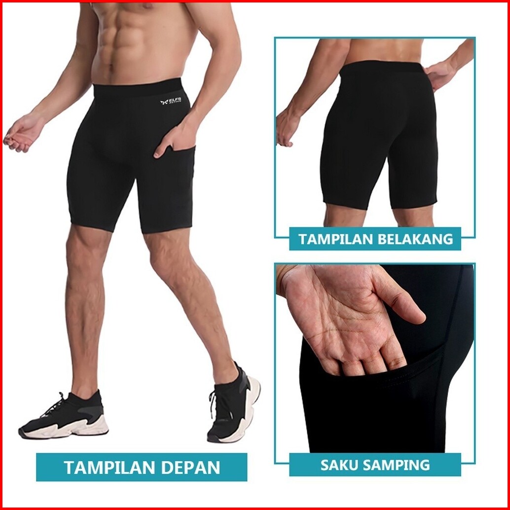 Elfs Active Compression Celana Pendek Pria Legging Gym Baselayer Short Pants Celana Olahraga