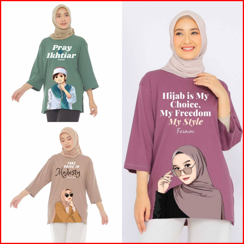Kaos Oversized Lengan 7 8 Terbaru Baju Atasan Wanita Hijab Friendly