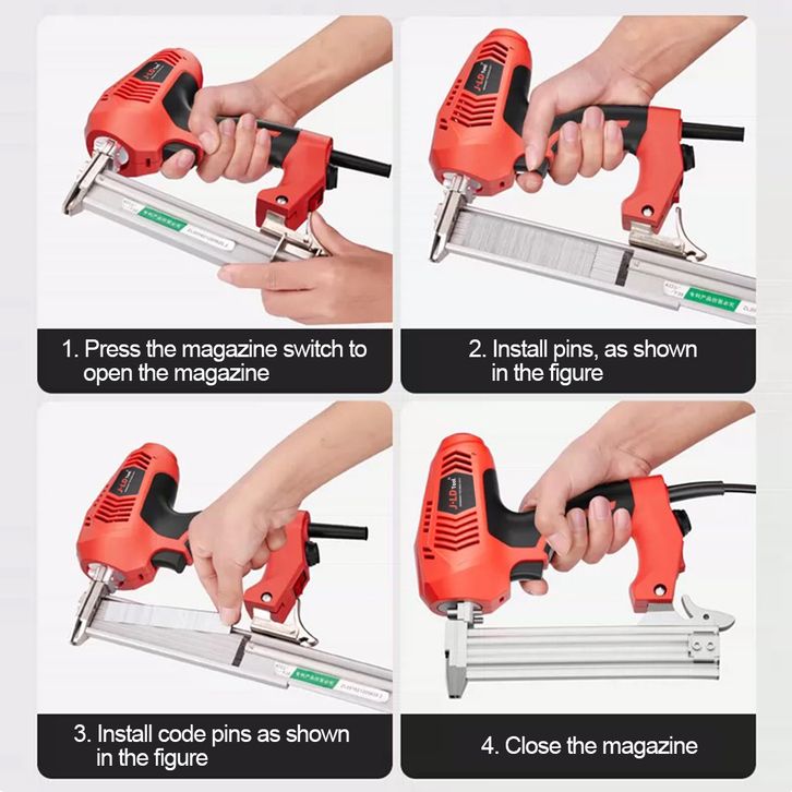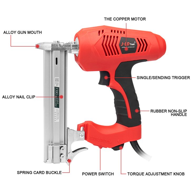 JLD Mesin Paku Tembak 2300W Pneumatic Nailer/Electric Nail Gun/Air Nailer 6Tingkat penyesuaian kekuatan