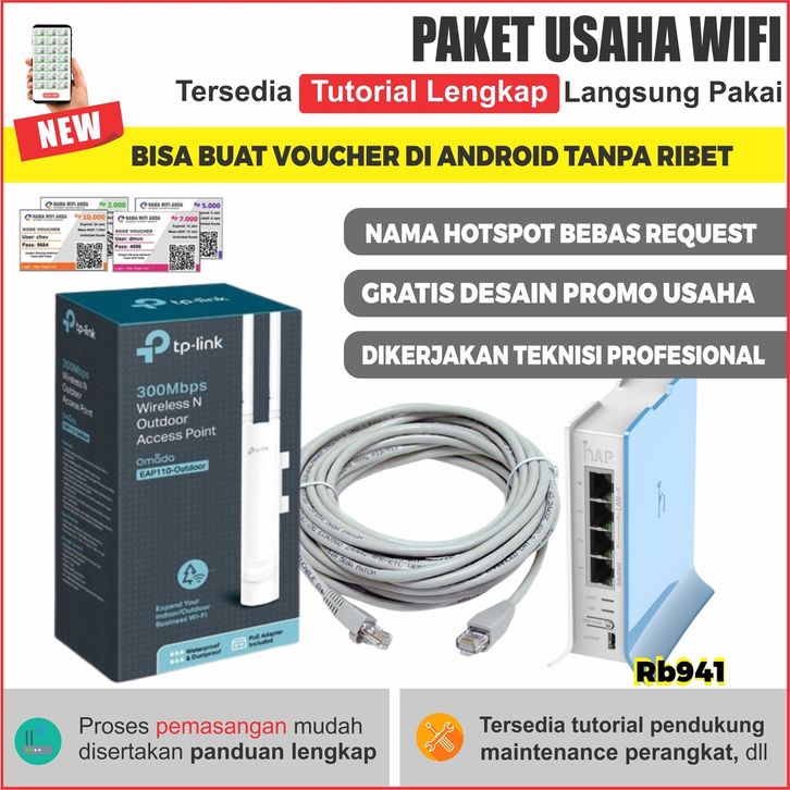 Paket Alat Usaha Wifi Sistem Pocer RT RW NET Siap Pakai - Mikrotik Rb941 + Eap110 Outdoor