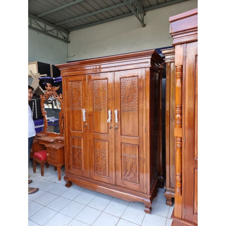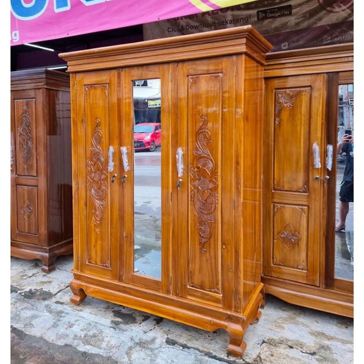 FREE ONGKIR / LEMARI PAKAIAN 3PT KAYU / LEMARI BAJU