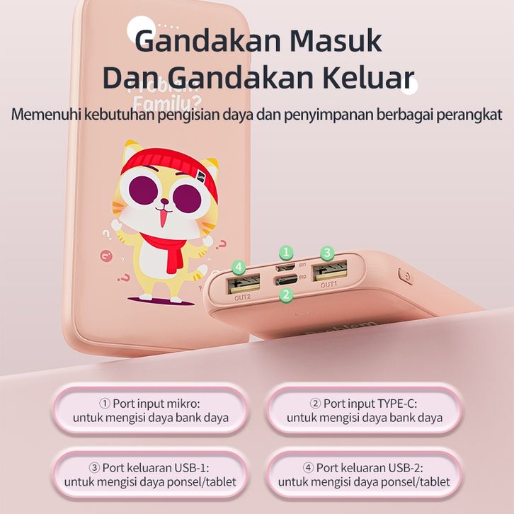Kivee powerbank mini lucu kartun Macaron power bank 10000 mah type c dual usb original