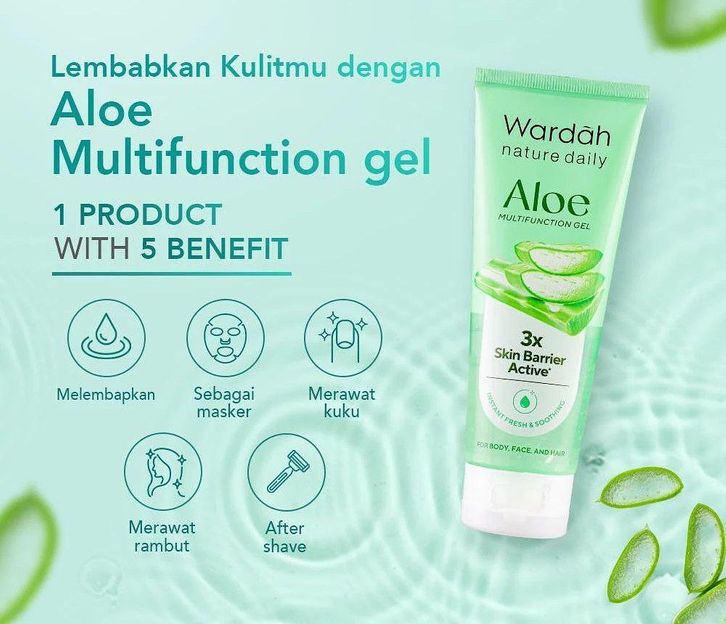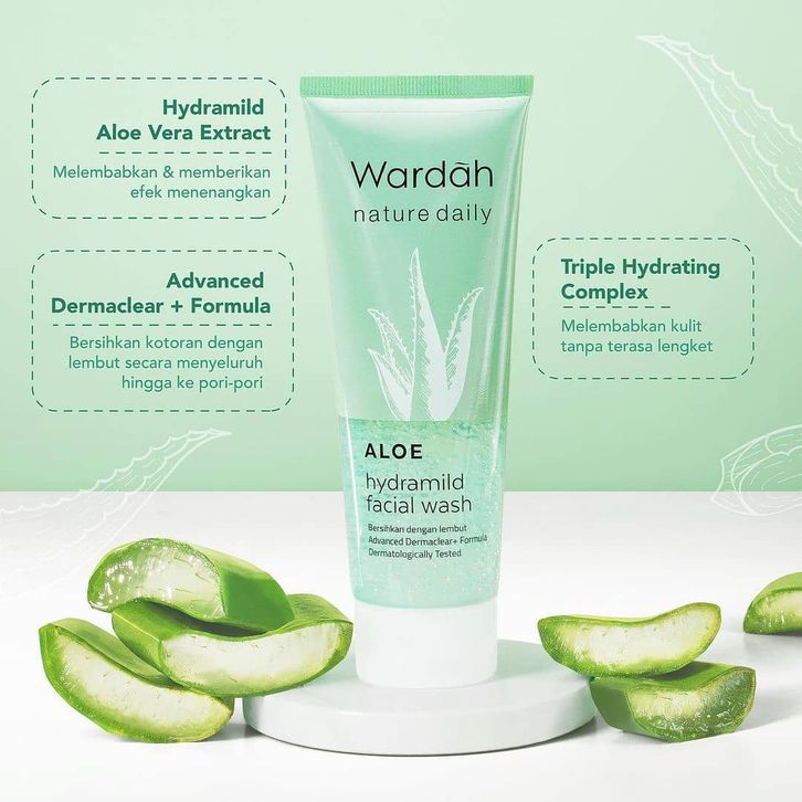 Wardah Nature Daily Aloe Hydramild Face Wash, Essence Toner, Moisturizer Cream, Multifunction Gel