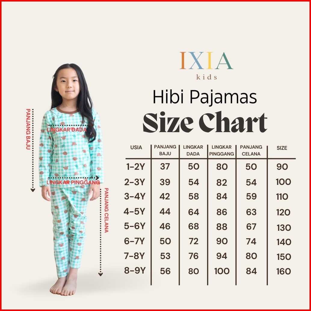 Ixia Kids Hibi Pajamas Baju Setelan Anak Perempuan Laki 1-9 Tahun