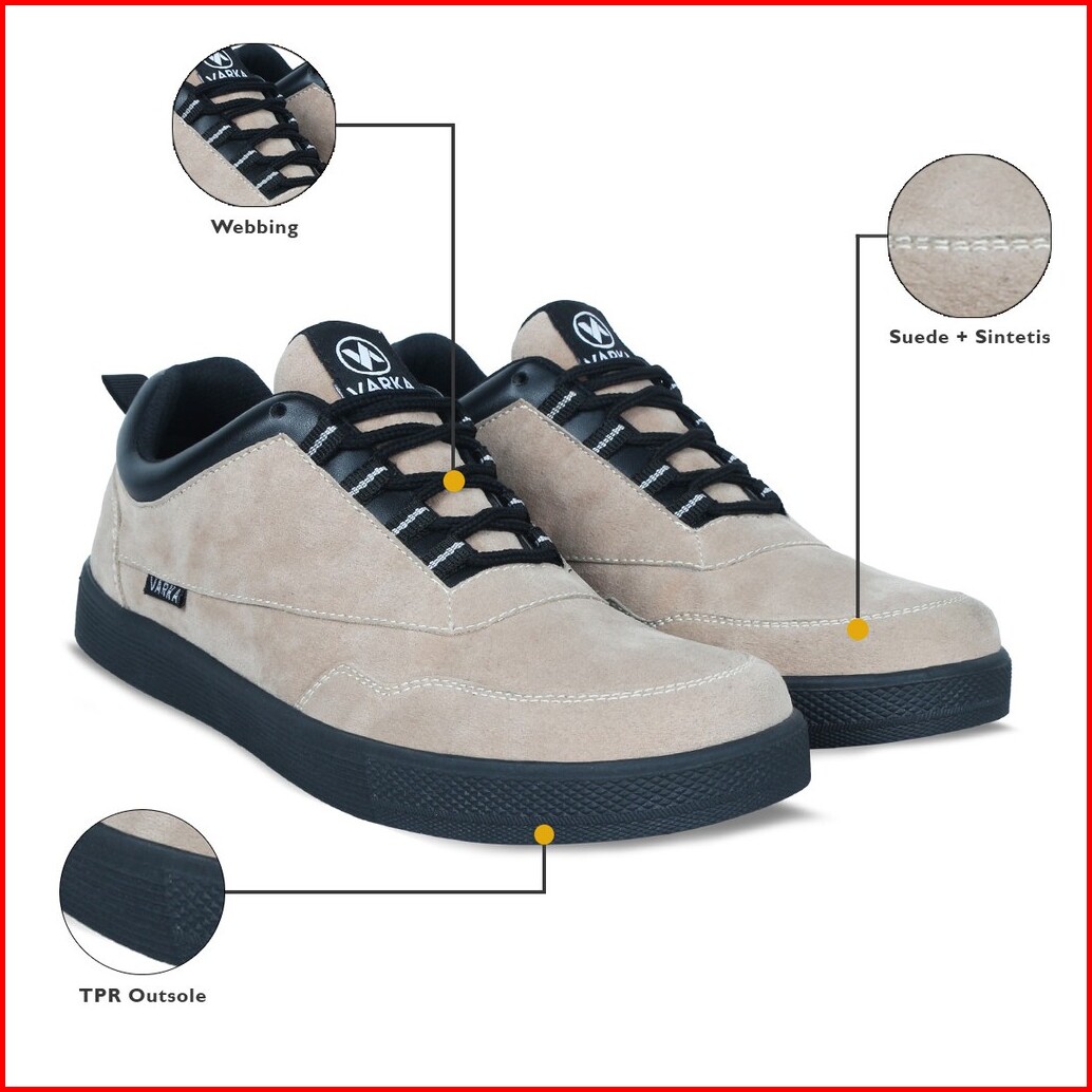 Sepatu Sneakers Pria V 655 Brand Varka Sepatu Kets Kerja Sekolah Kuliah Murah Berkualitas Warna Krem