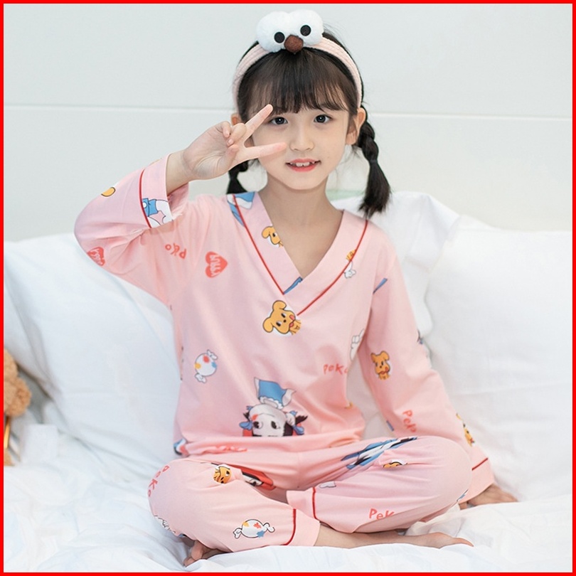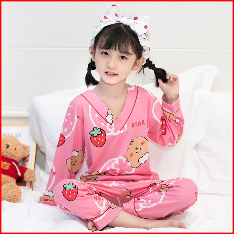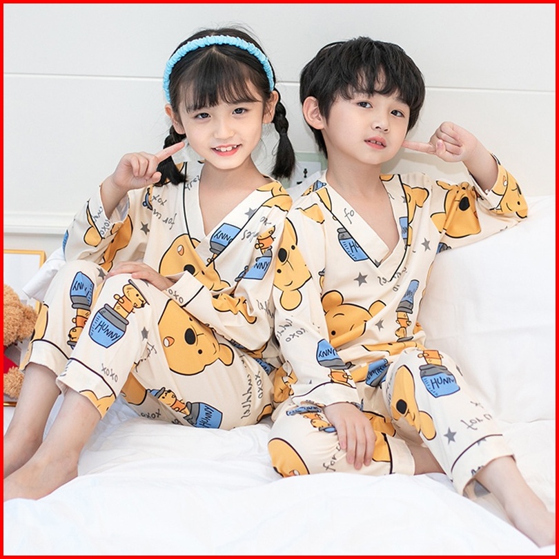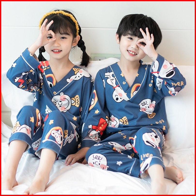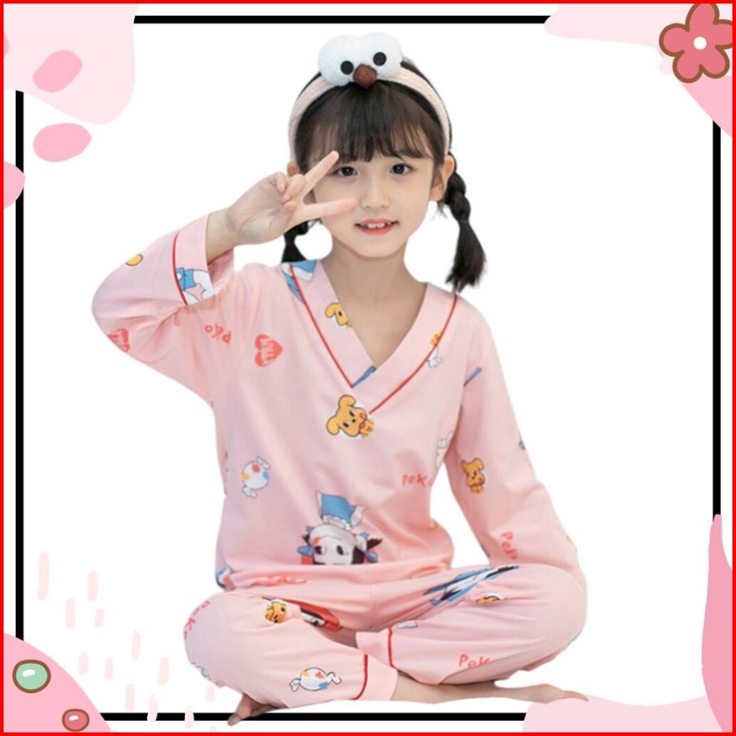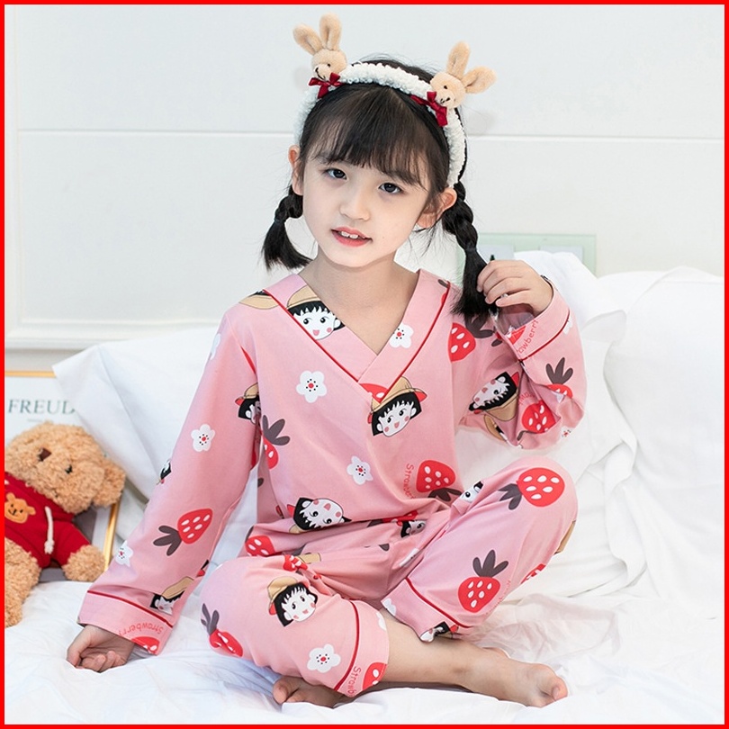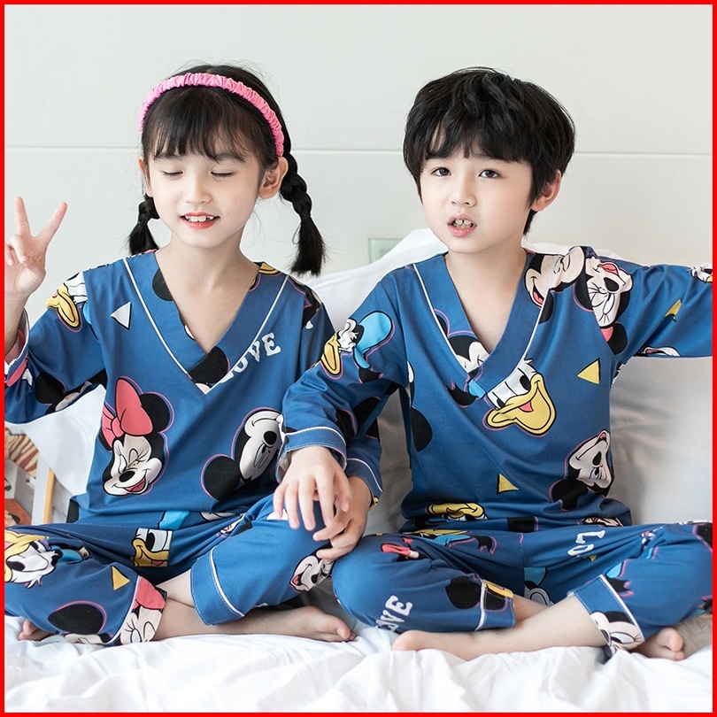 Setelan Piyama Baju Tidur Kaos Anak Kimono Atasan Tangan Panjang Bawahan Celana Penjang Usia 4-12 Tahun