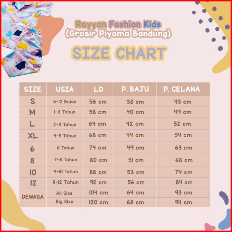 S, M, L, XL, Size 8, Size 10, Size 12, Dewasa Ld 104 cm, Jumbo Ld 120 cm, Size 6