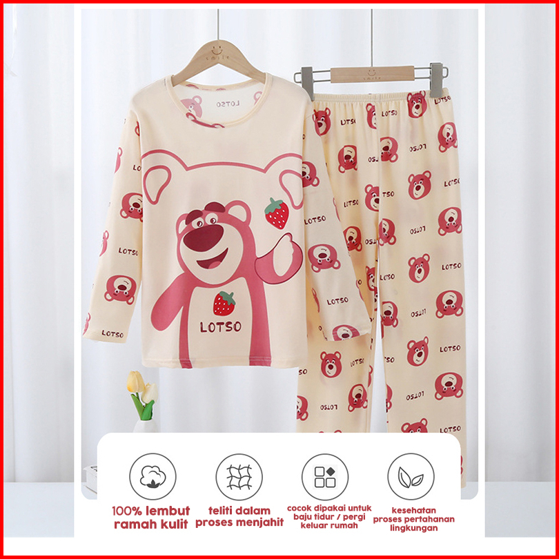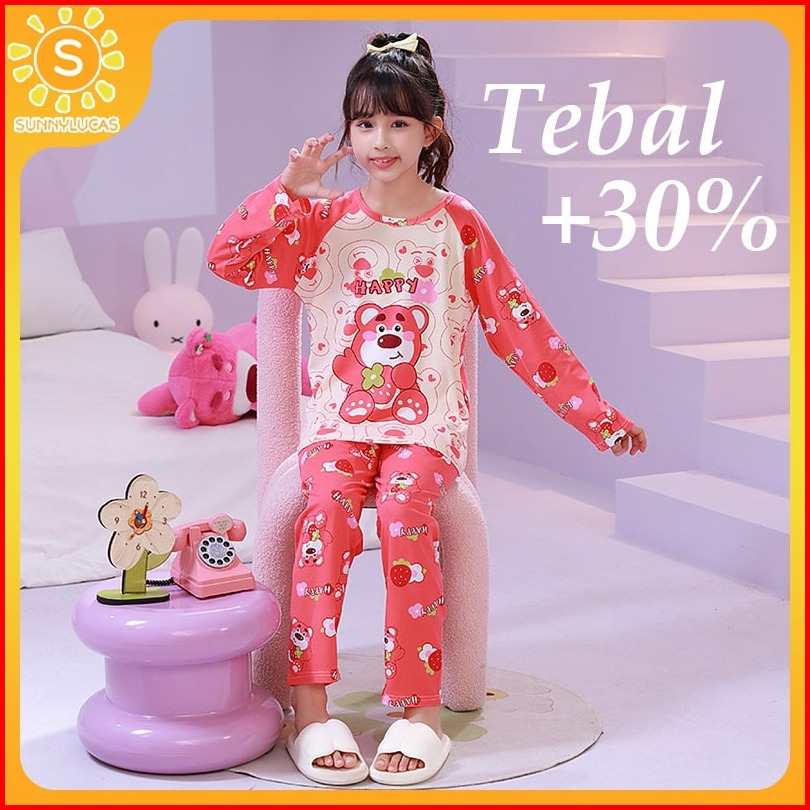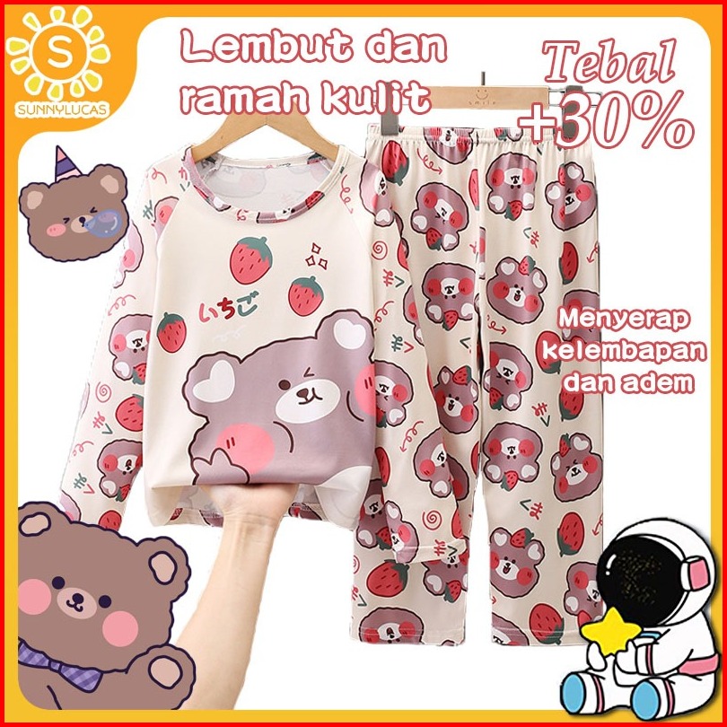 Sunny.lucas Setelan Baju Tidur Lengan Panjang Untuk Anak Perempuan Laki Laki Lebih Tebal Set Piyama Anak Print Kartun Ba