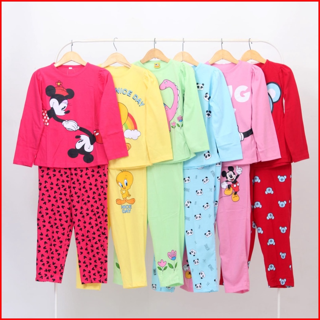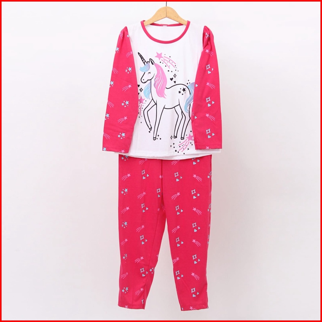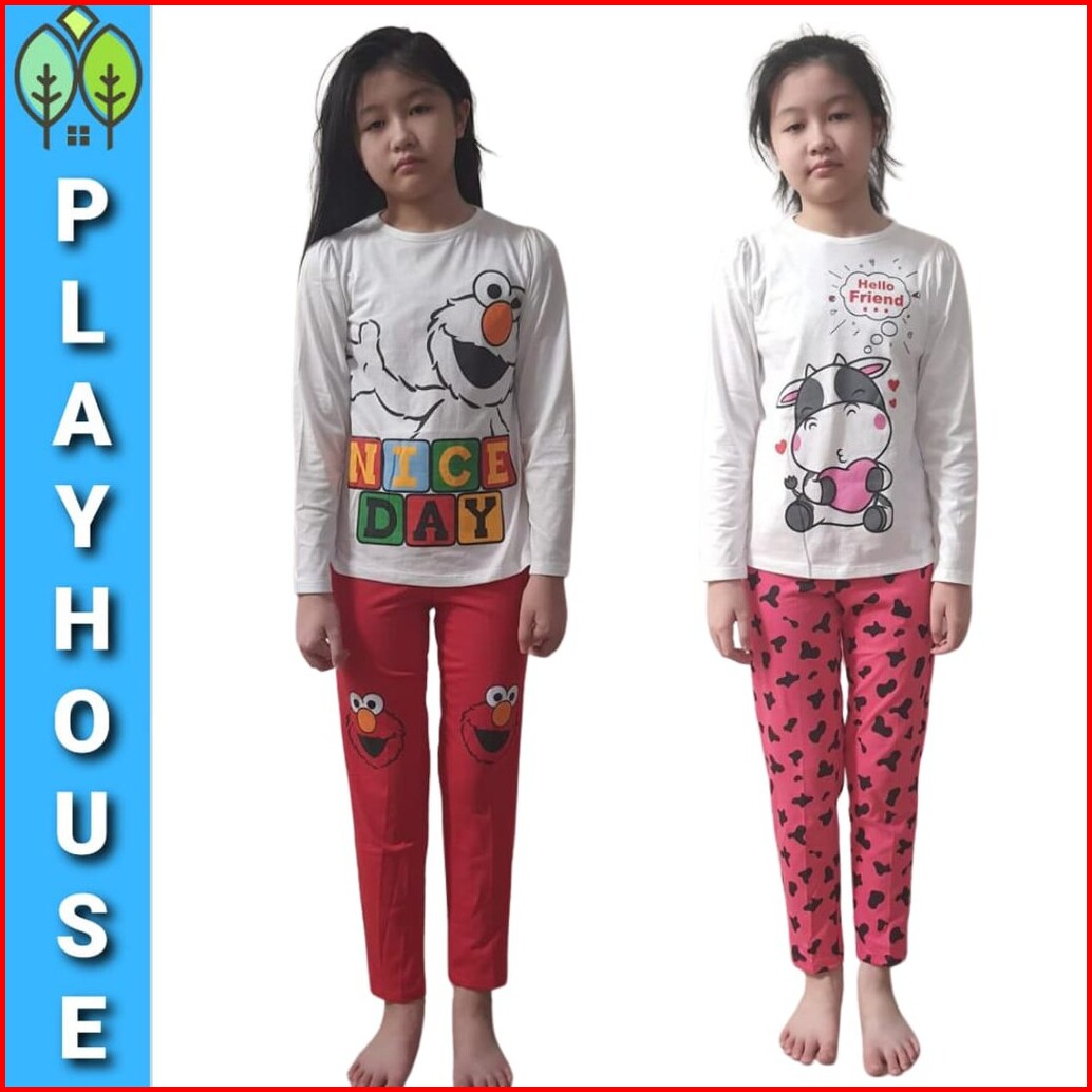 Setelan Baju Tidur Anak Perempuan Lengan Panjang 6-12 Tahun Piama Anak Perempuan