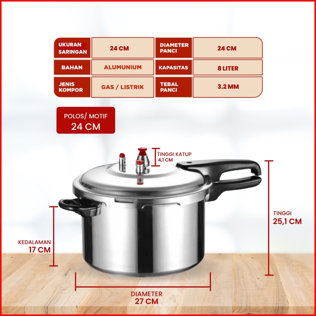 Panci Presto 8 Liter Pressure Cooker 24 Cm Murah