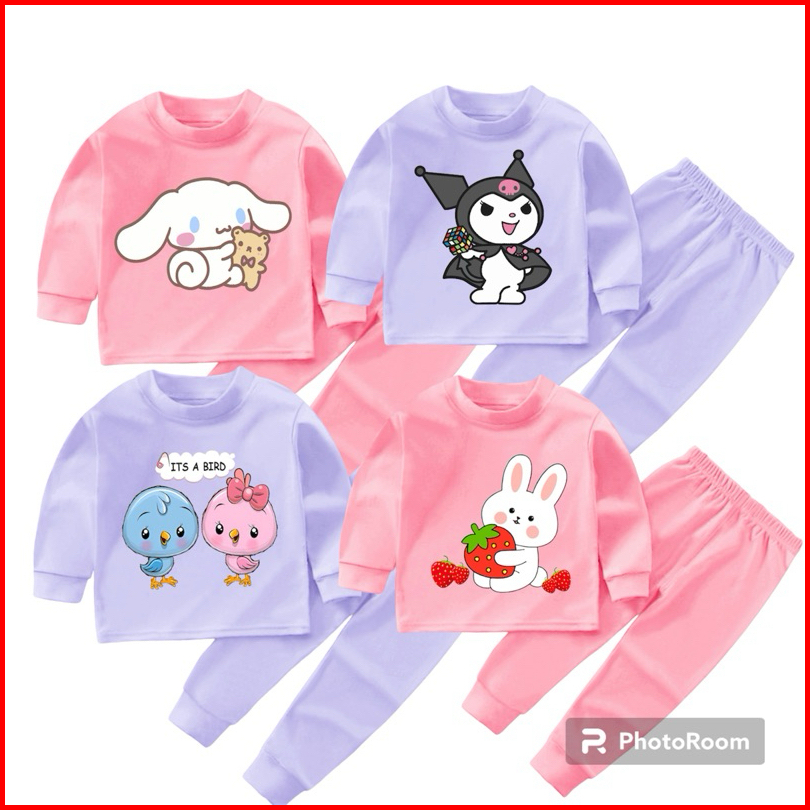 Paket 4 Pcs Sanrio Setelan Baju Tidur Piyama Anak Bayi Batita Balita Perempuan Lucu Usia 0-4 Tahun Lengan Panjang