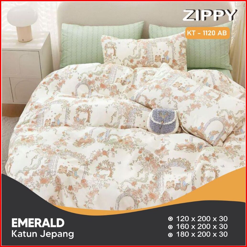 Sprei Set Katun Jepang Emerald Sandy Collection Motif Anaktinggi 30cm