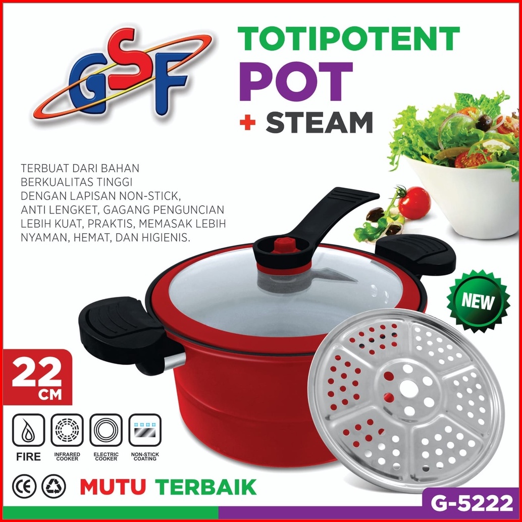 Panci Presto Alumunium Gsf-5222 Steamer Anti Lengket Gsf-5122 Panci Presto G-5324 24cm