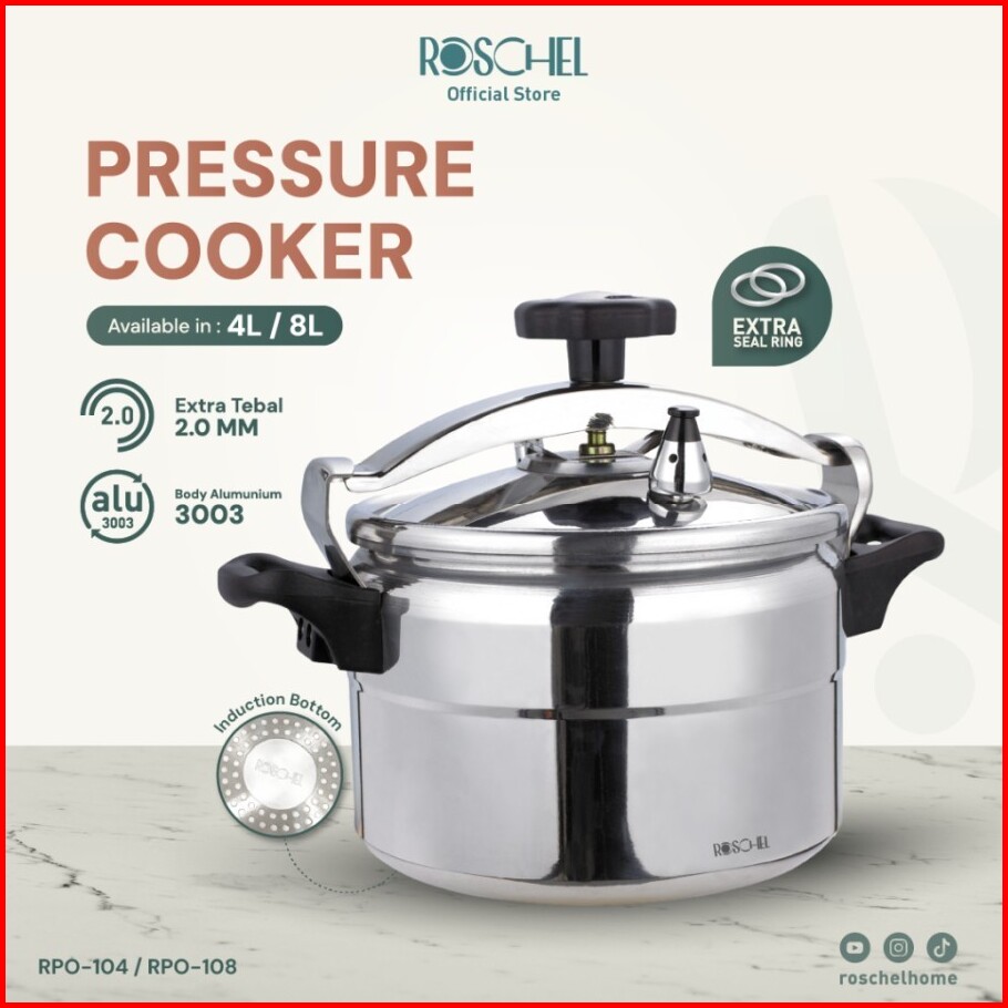 Roschel Pressure Cooker High Grade Aluminium 3003 Panci Presto 4l 8l