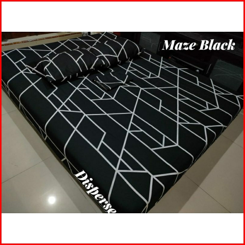 Sprei Maze Black Abstrak Hitam Aesthetic Termurah 120x200 160x200 180x200 200x200 Anti Geser
