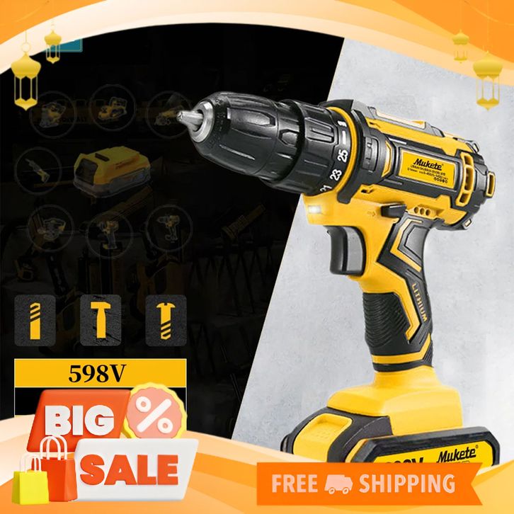 [Mall] Mukete 298V/398V/598V bor cordless bor impact bor impek bor listrik Bor cas Mesin Bor Baterai Tangan CordlessDril