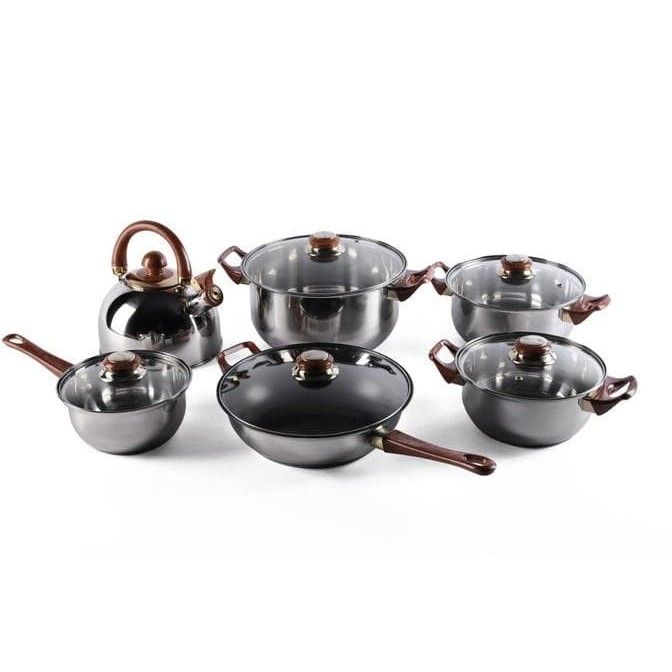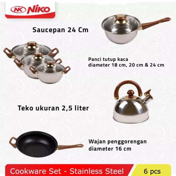 Satu Set Alat Masak Panci Set Niko NK 1113SP Stainless Tutup Kaca Wajan Teko Wok Frypan Penggorengan Teflon Paket Panci
