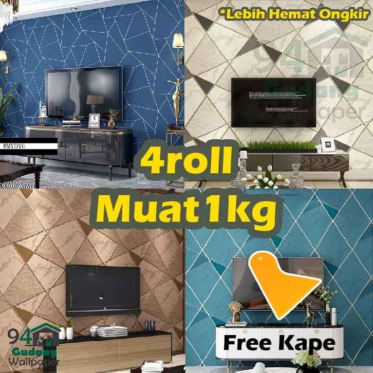 (PROMO) Gudang Wallpaper Stiker Dinding Kamar Tidur Motif Zigzag Biru Elegan Bahan PVC Premium Anti Air dan Anti Noda Be