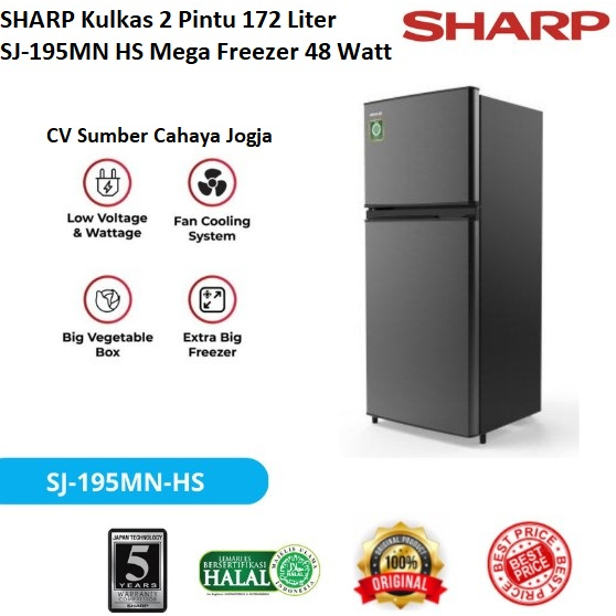 SHARP KULKAS 2 PINTU 172L LOW WATT 48W SJ-195MN HS KIREI SJ195MN 195MN