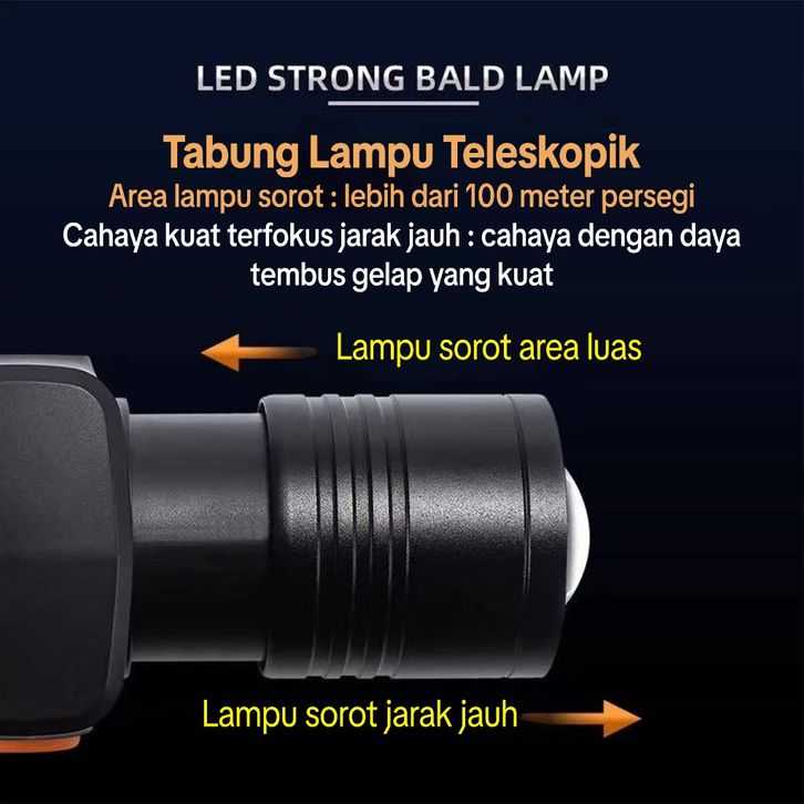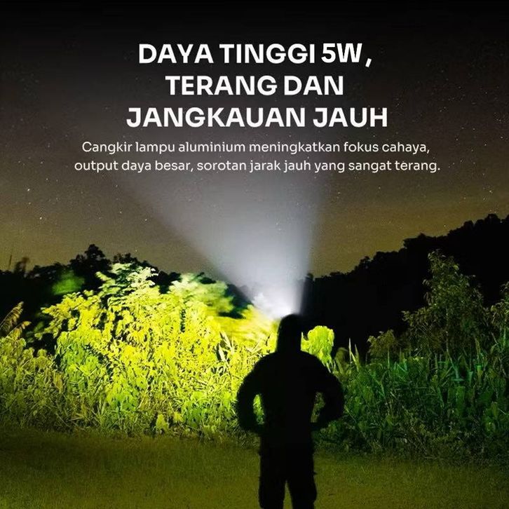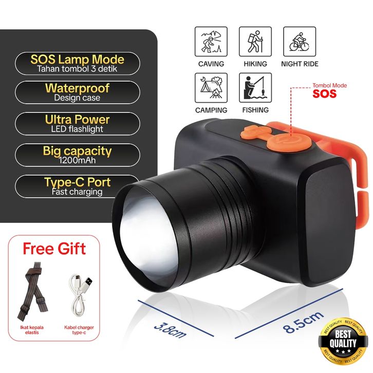 Senter Kepala LED Super Terang 60W Rechargeable USB-C Baterai Tahan Lama adaptor 5V2A Lampu Camping Hiking 4500mAh