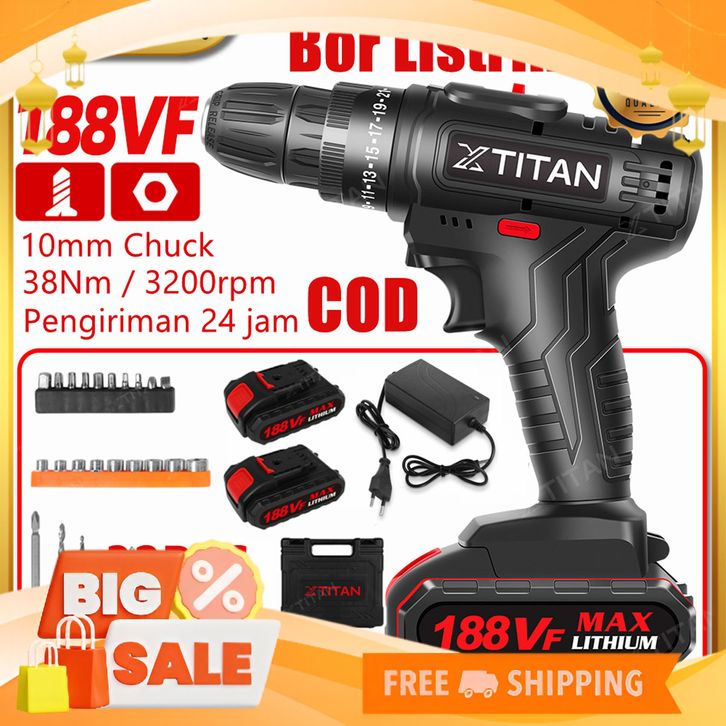 [Mall] 188VF 25+1 Torsi MesinBor Listrik Murah 10mm Mesin Bor Baterai Bor Tanpa Kabel Bor Tangan Listrik Battery Of dril