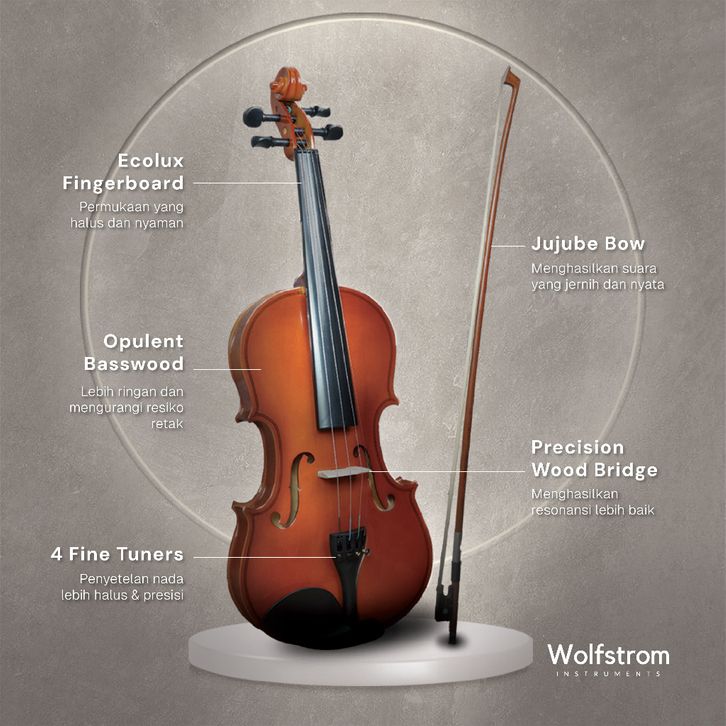 Wolfstrom VELANTO - Biola Violin Klasik Full Set Ukuran 1/2, 3/4, 4/4