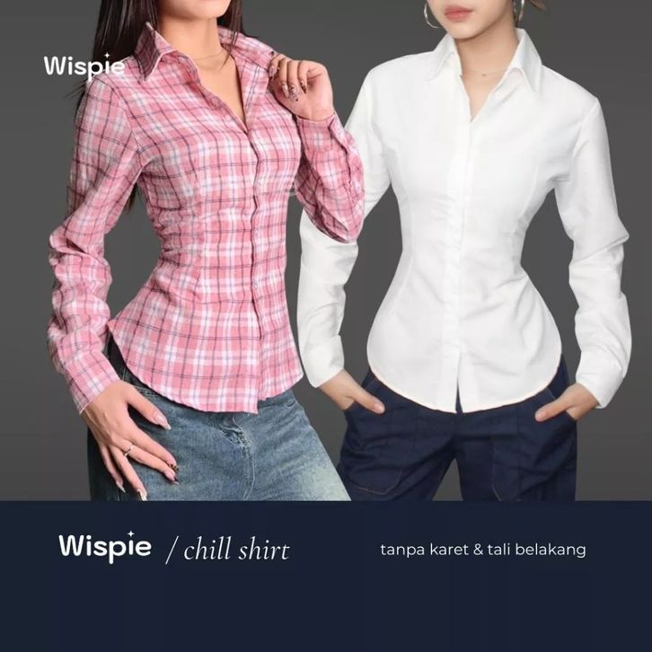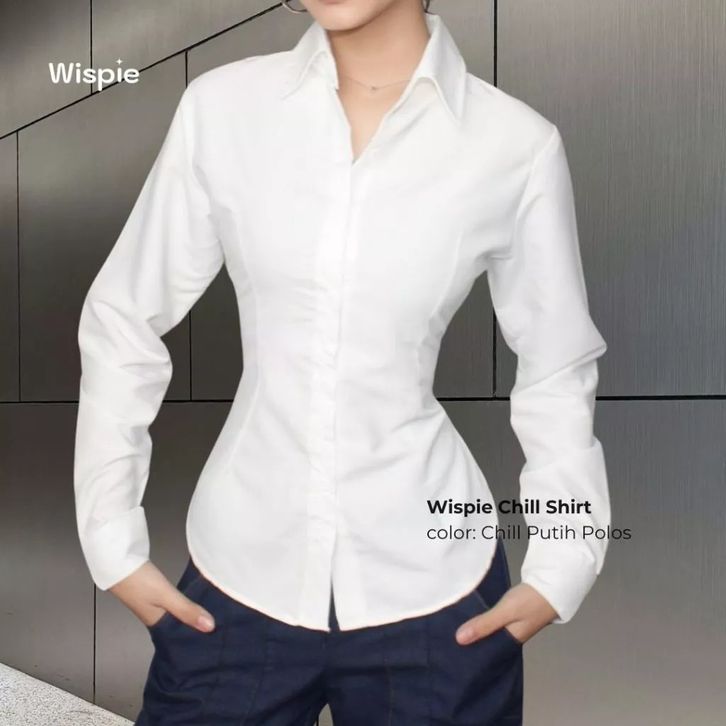 Wispie Chill Shirt | Kemeja Kerja Putih Polos Interview Wawancara Ospek Wanita Lengan Panjang Fitted Shirt Kotak