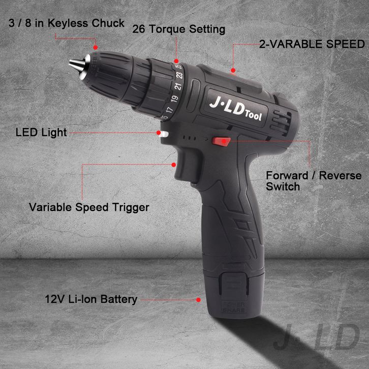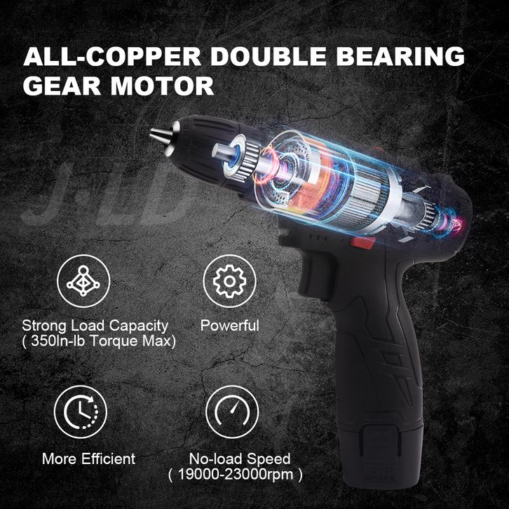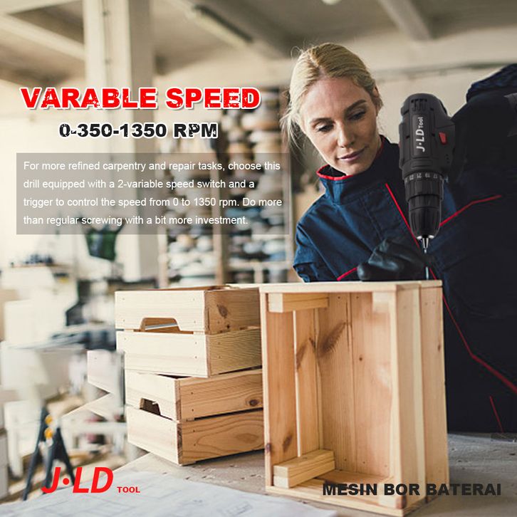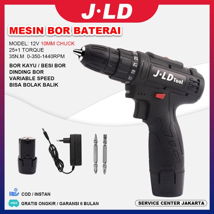 JLD Mesin bor 12vf Bor Cordless 10mm Mesin Bor Murah Kayu Triplek Besi Ringan Portable Set Variable Speed Rotation Kotak