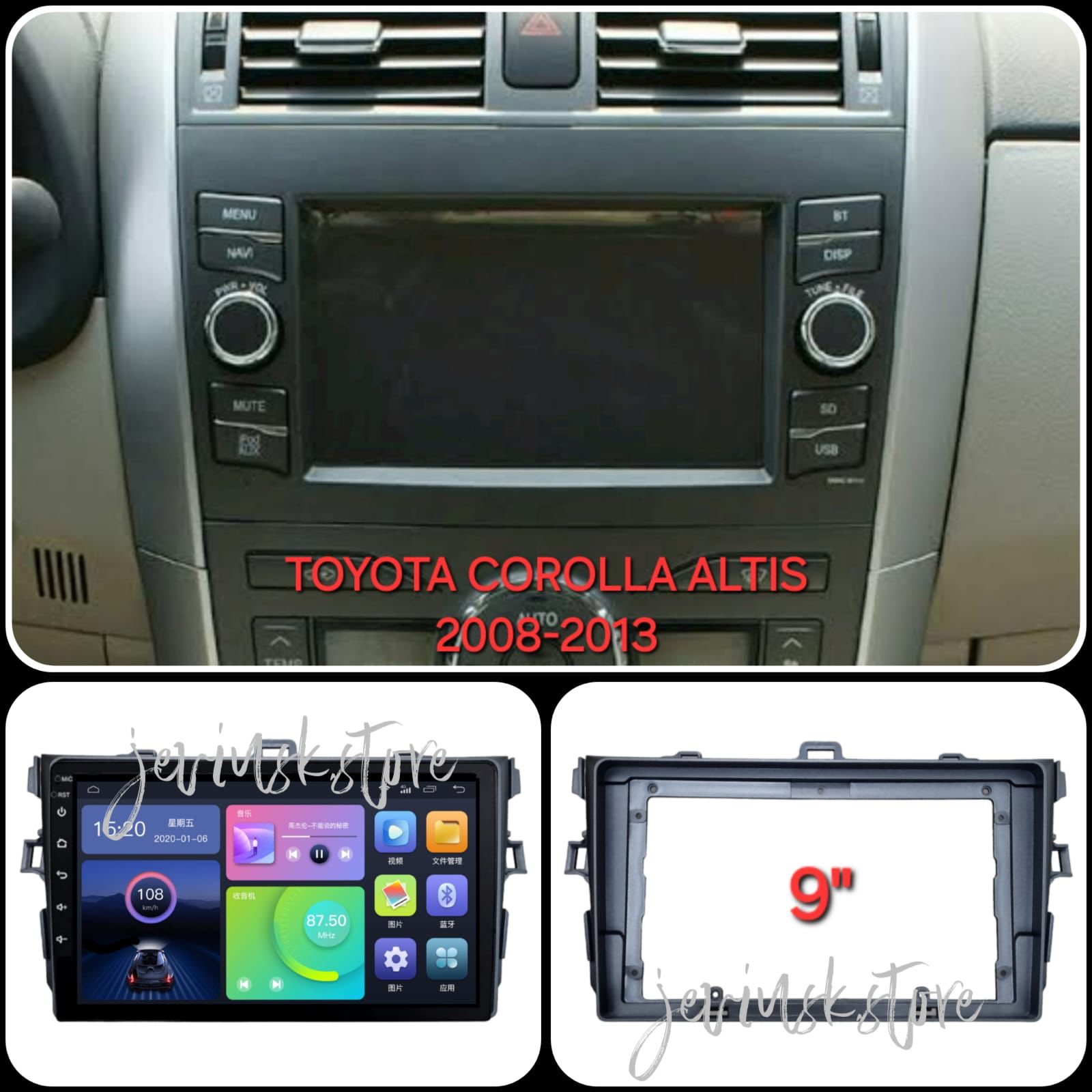 FRAME HEAD UNIT ANDROID TOYOTA ALTIS 9” INCH 2008-2013
