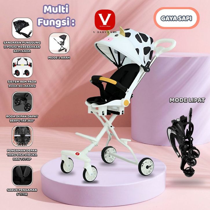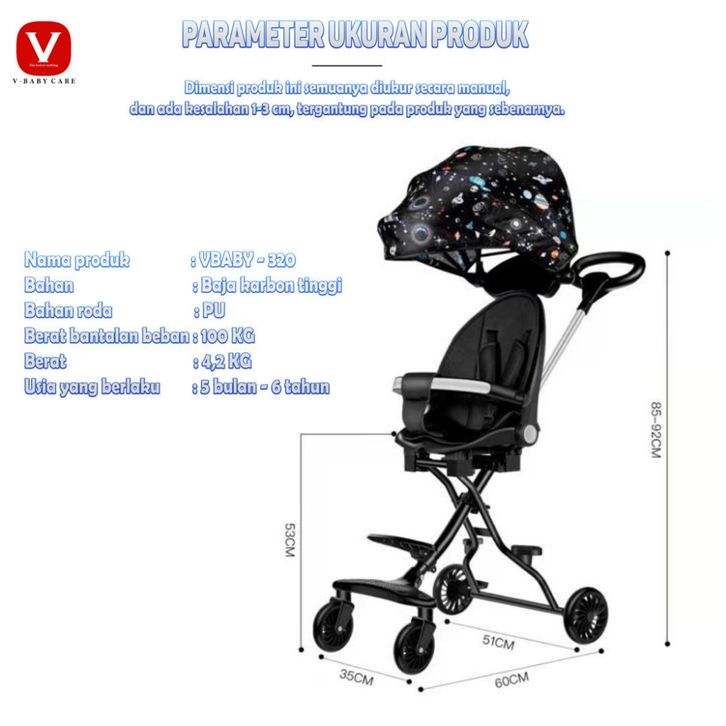 FREE ONGKIR TANPA DP✔️VBABY CARE KERETA DORONG DATAR BERBARING DAPAT DILIPAT , DUA ARAH, STROLLER TROLI BAYI